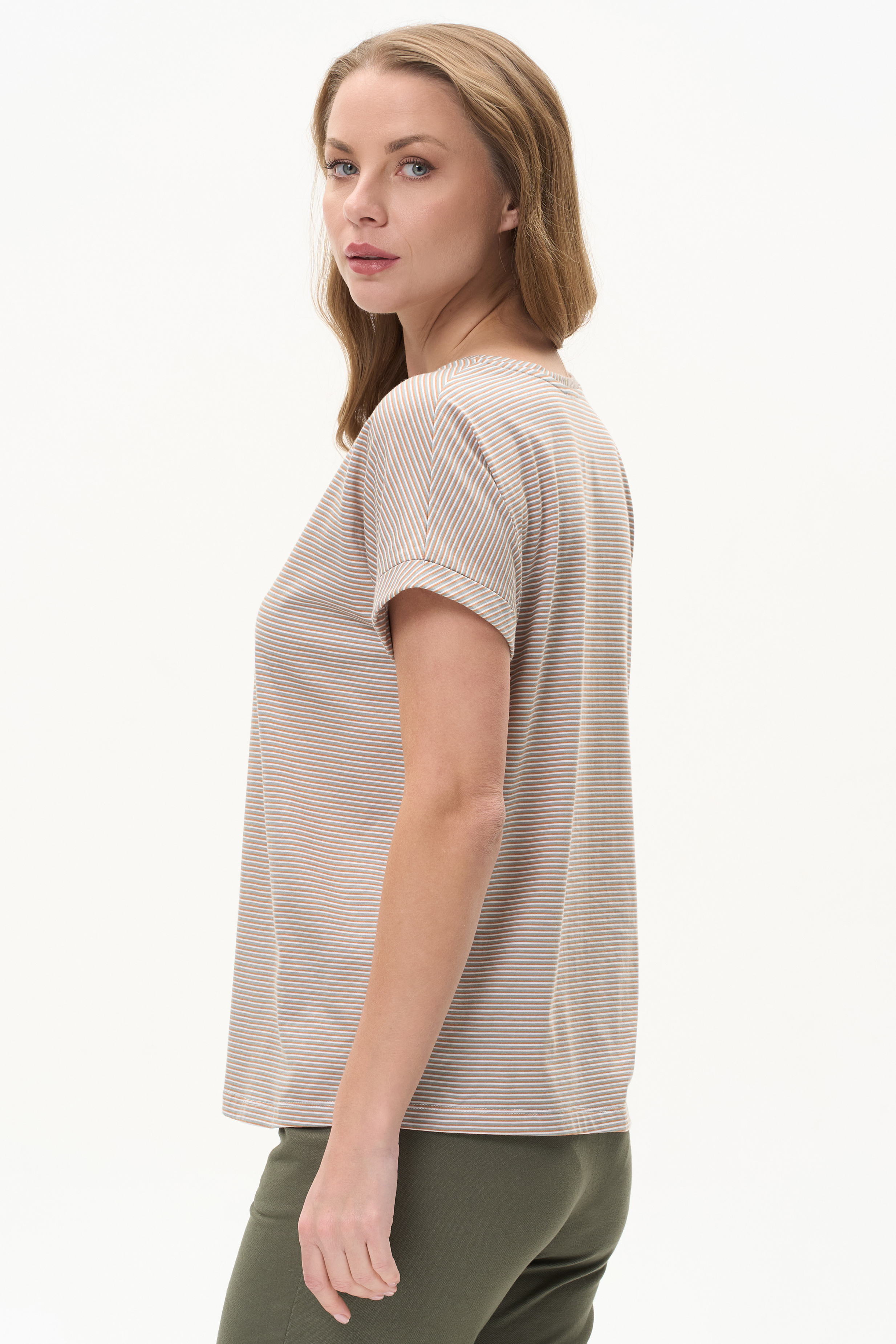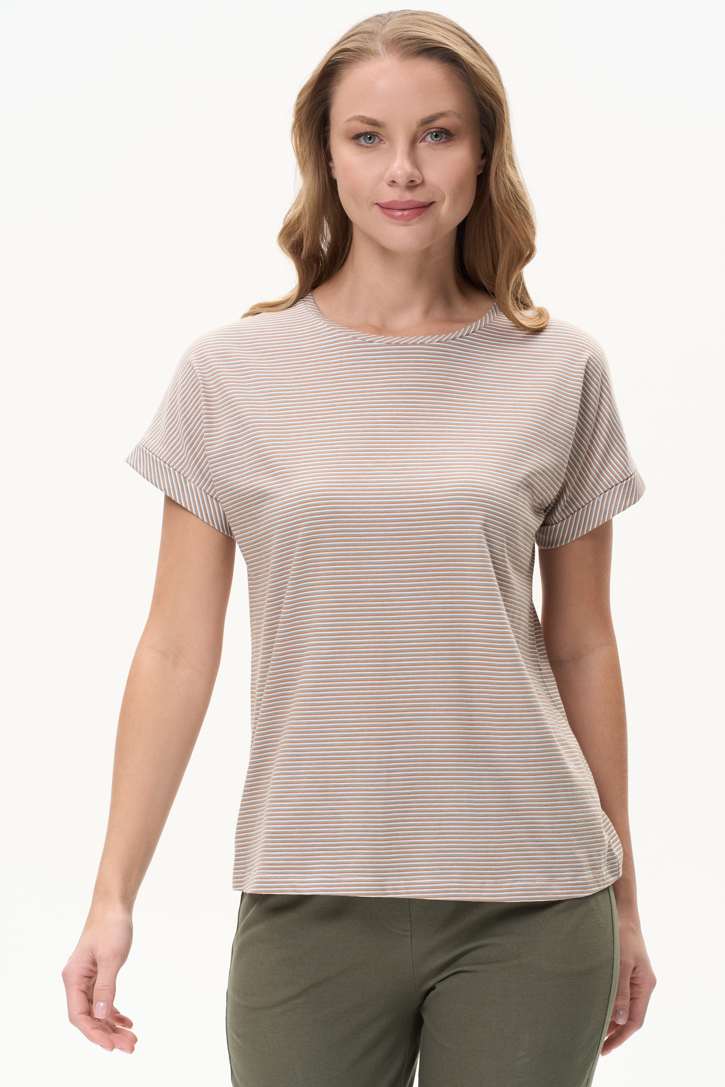 100% хлопок Футболка из хлопкового трикотажного полотна. Круглый вырез горловины, цельнокроеные короткие рукава с отворотами. Рост модели 175.