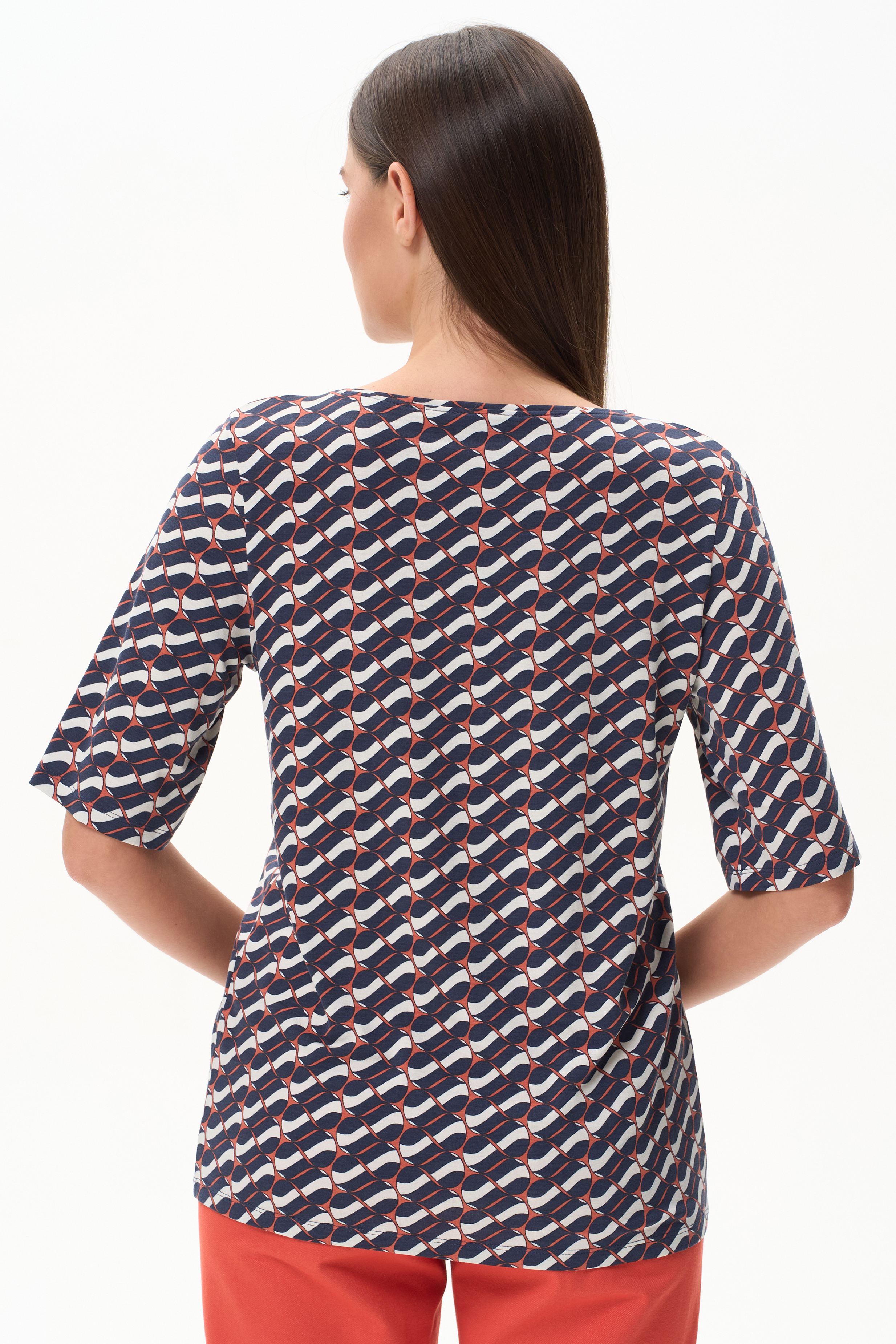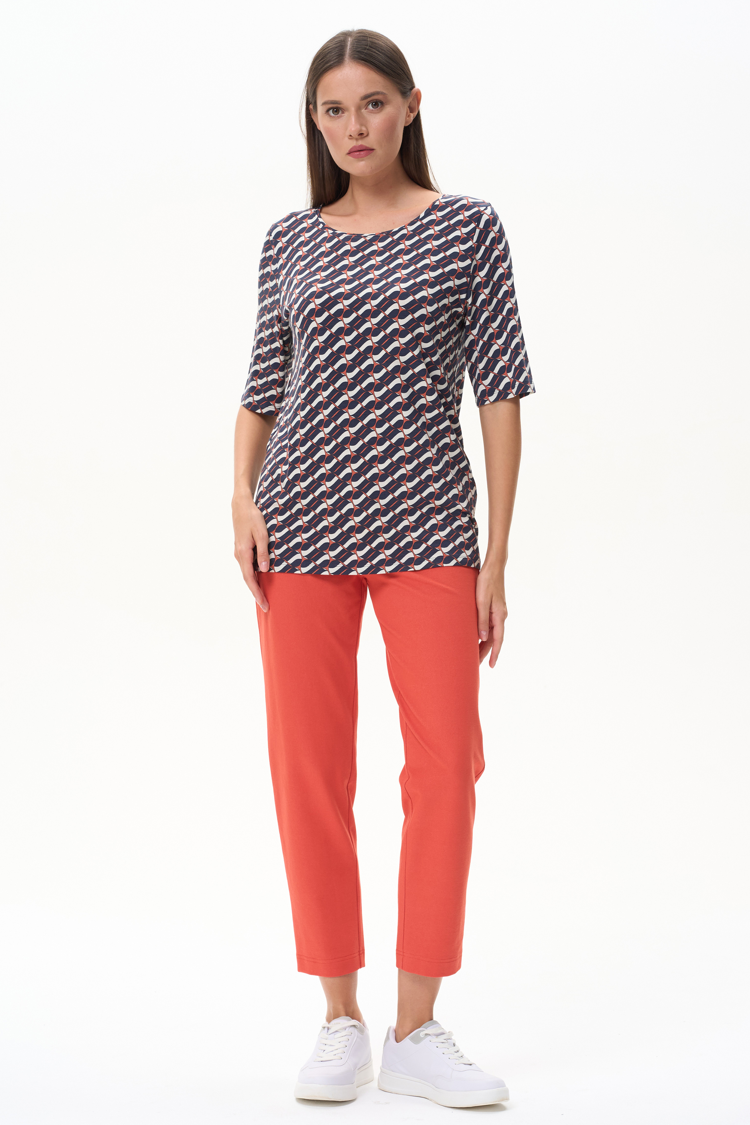 92% вискоза, 8% эластан Базовая блузка из вискозы с Графическим рисунком в стиле Gucci. Втачные рукава до локтя, длина блузки закрывает паховую зону. Рост модели 175 см