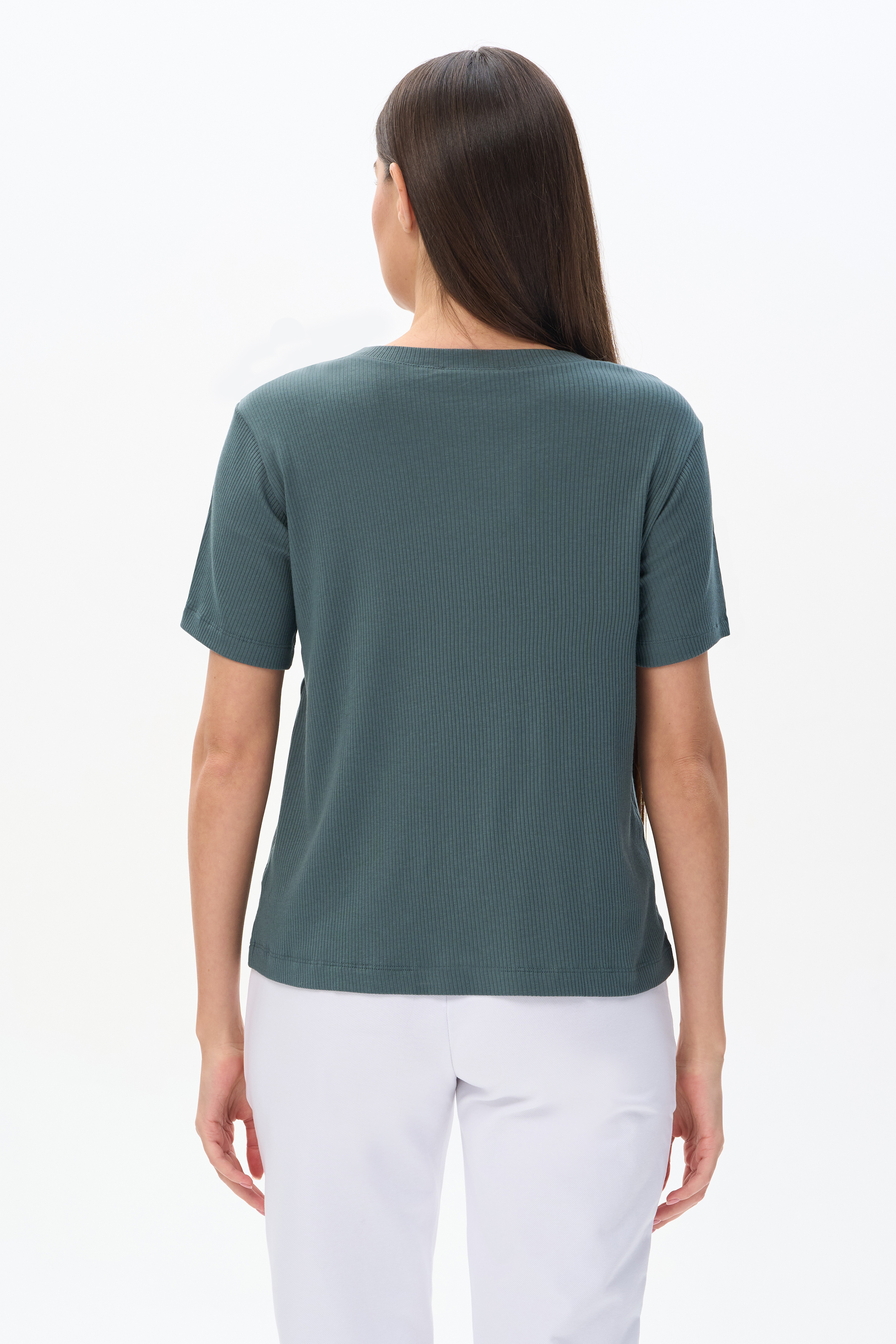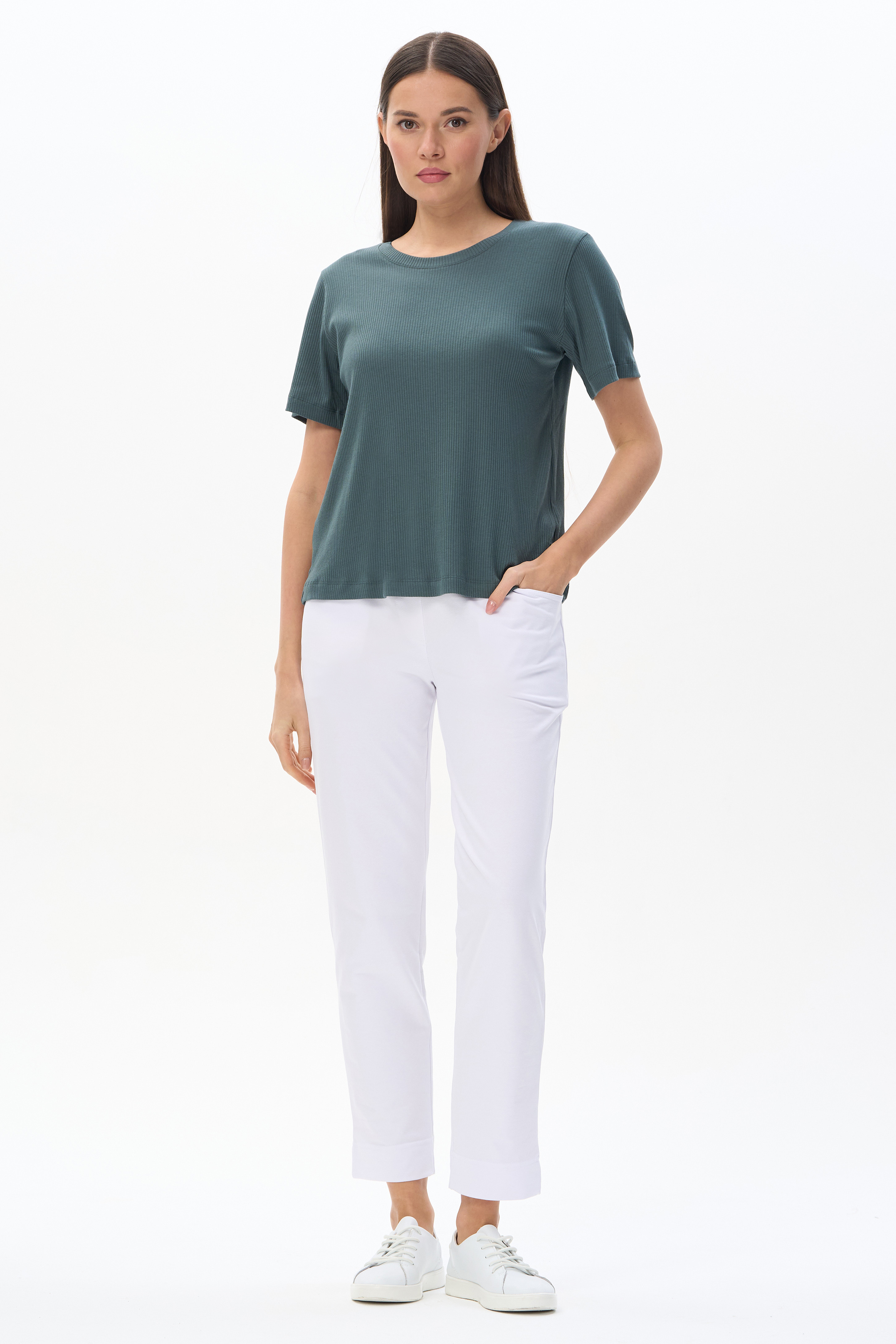 49% хлопок, 49% модал, 2% эластан Футболка из фактурного хлопкового полотна с модалом 200 гр в оттенке Серебристая сосна. Модель свободная, прямого силуэта, круглый вырез горловины, короткие втачные рукава.Комфортная модель, не облегает фигуру, приятная к телу. Рост модели 175 см.