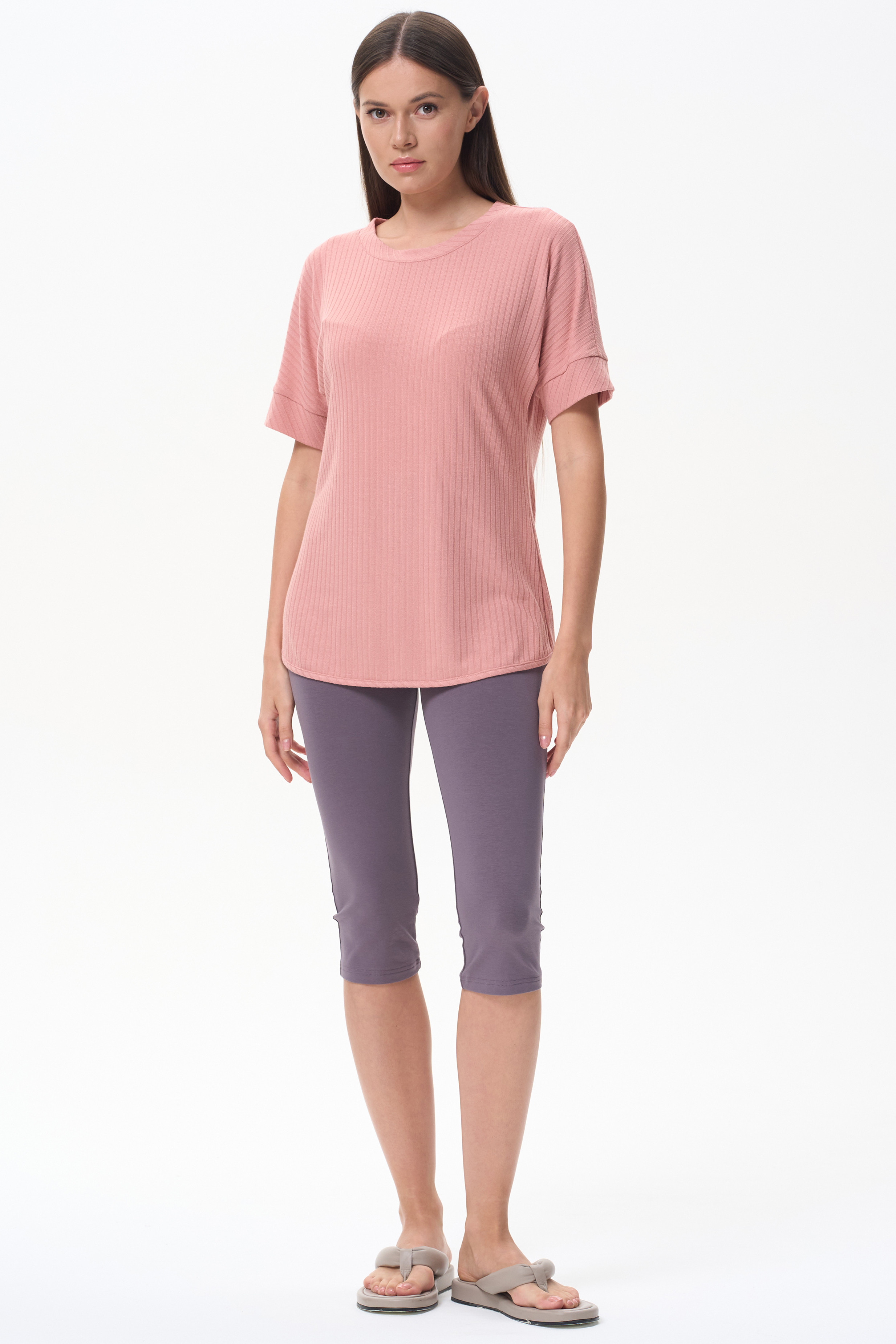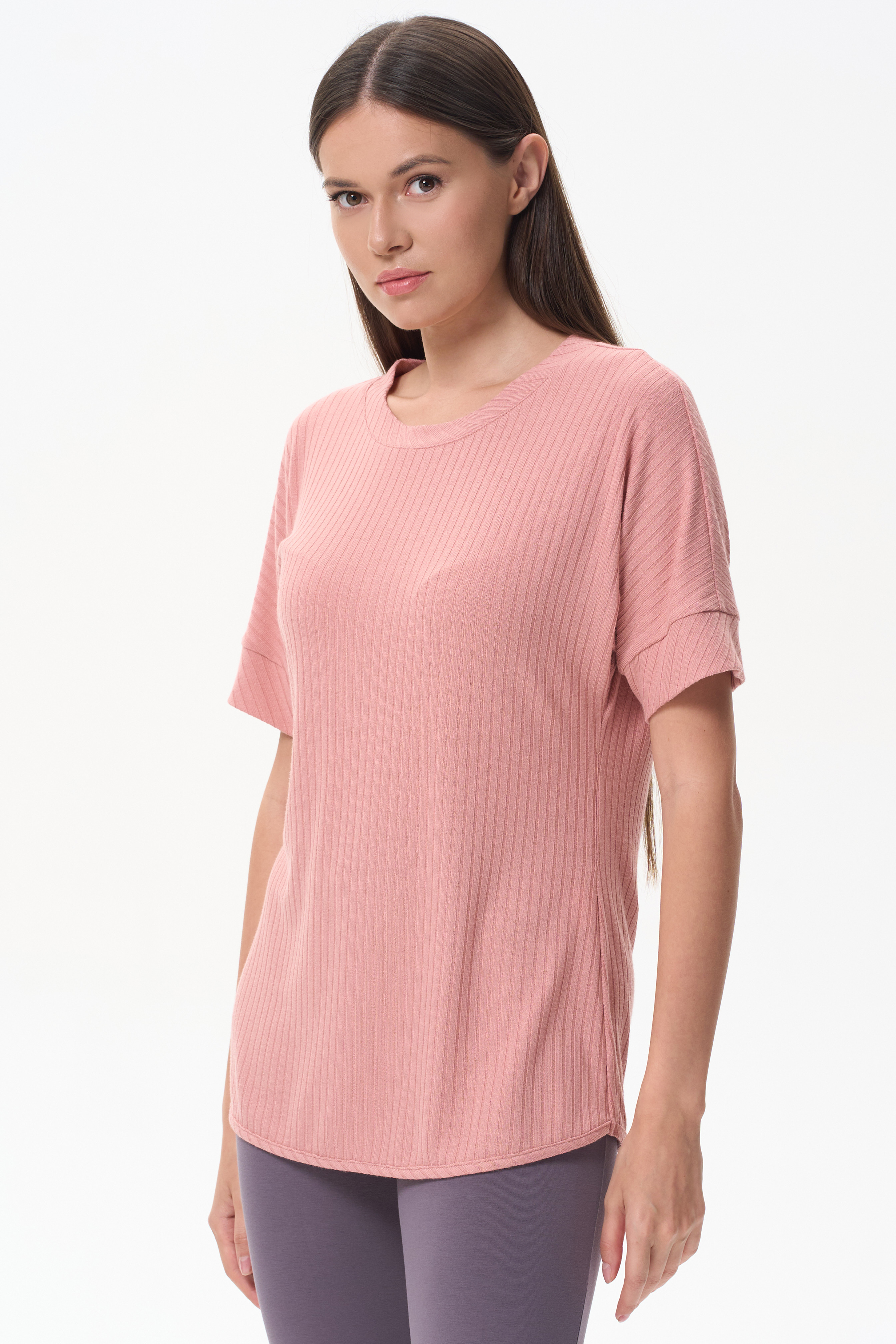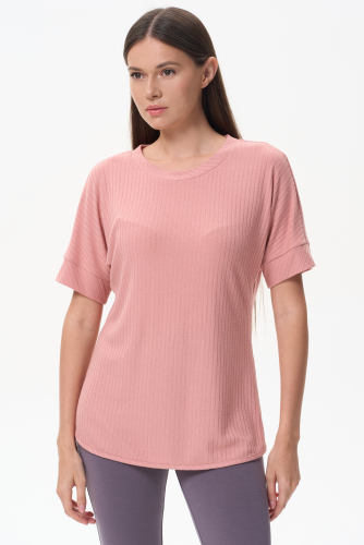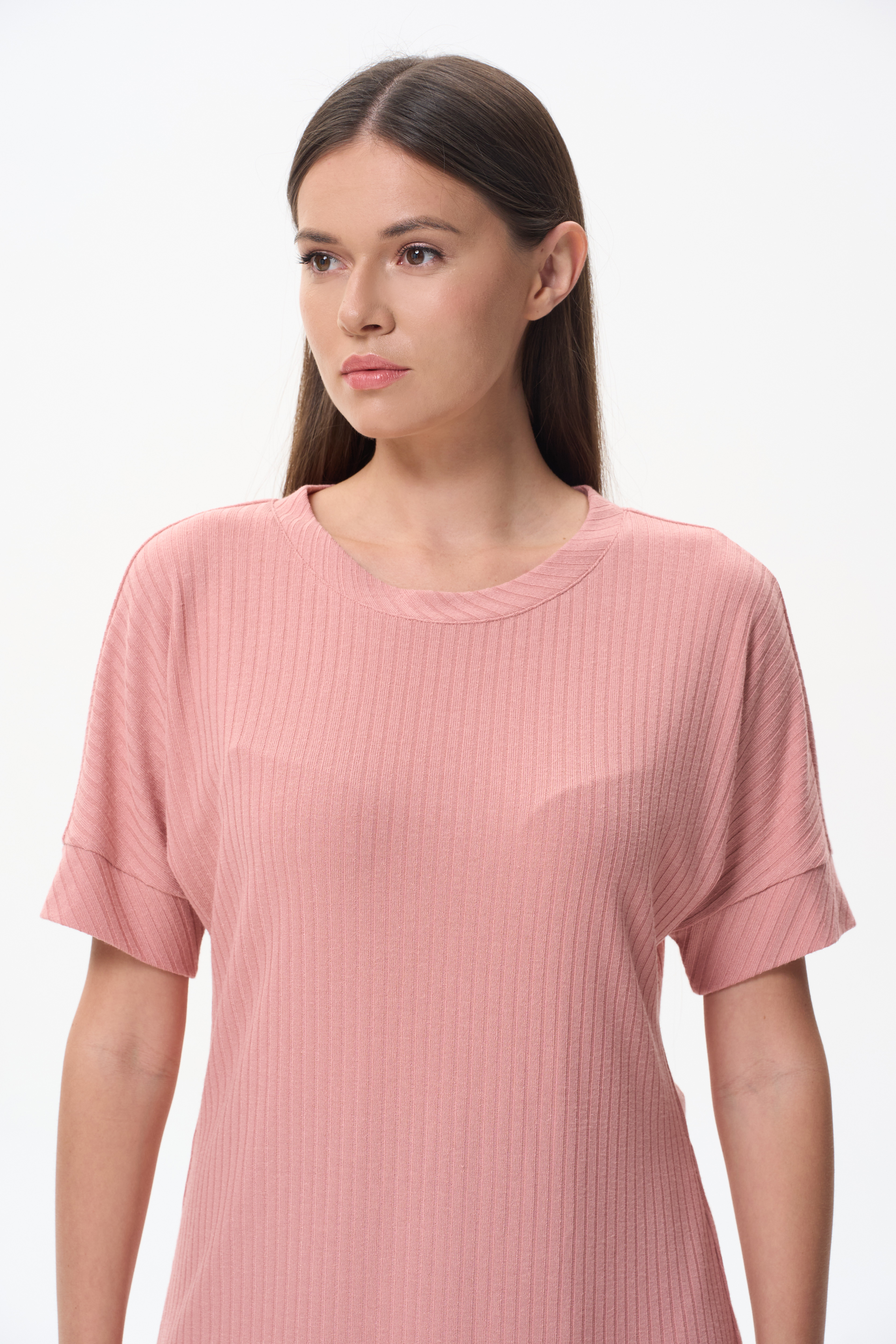 75% вискоза, 20% полиэстер, 5% эластан Удобная женственная блузка из вискозного кашкорсе с бархатистым эффектом в коралловом оттенке. Модель с круглым вырезом горловины, цельнокроеными рукавами длиной до локтя и плавной линией низа. Идеально смотрится в комплекте с брюками, составляя комплект для дома и отдыха. Рост модели 175 см.
