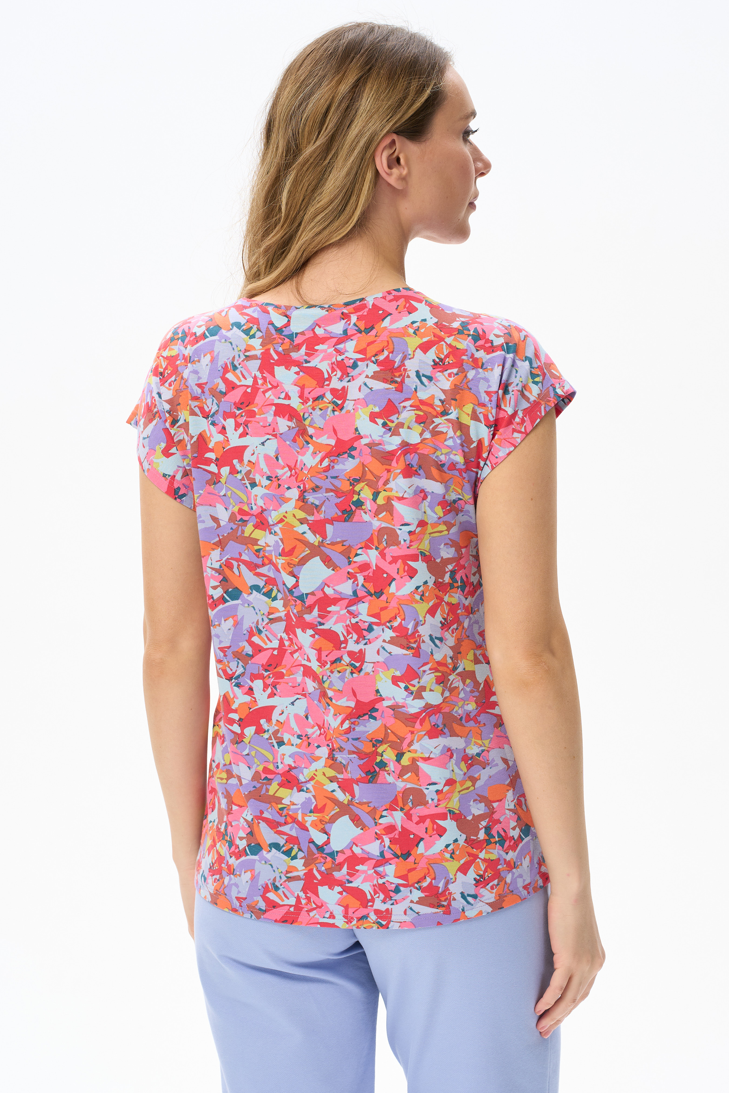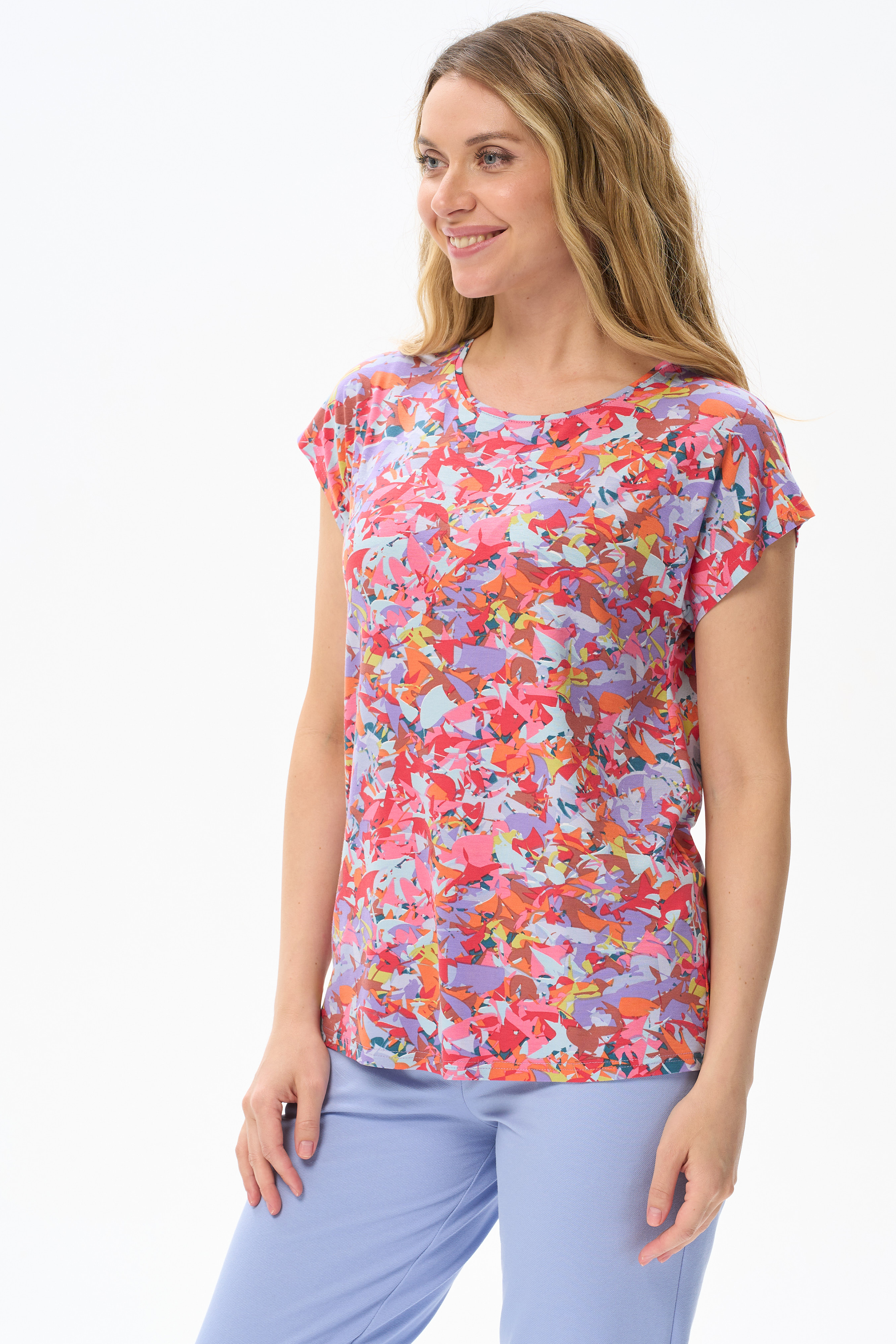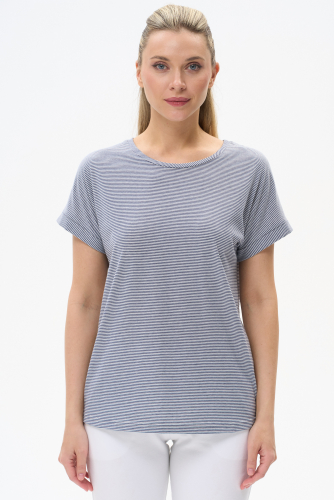 92% вискоза, 8% эластан Футболка прямого силуэта из вискозного трикотажного полотна с эластаном. Круглый вырез горловины, цельнокроеные короткие рукава. Рост модели 175 см.