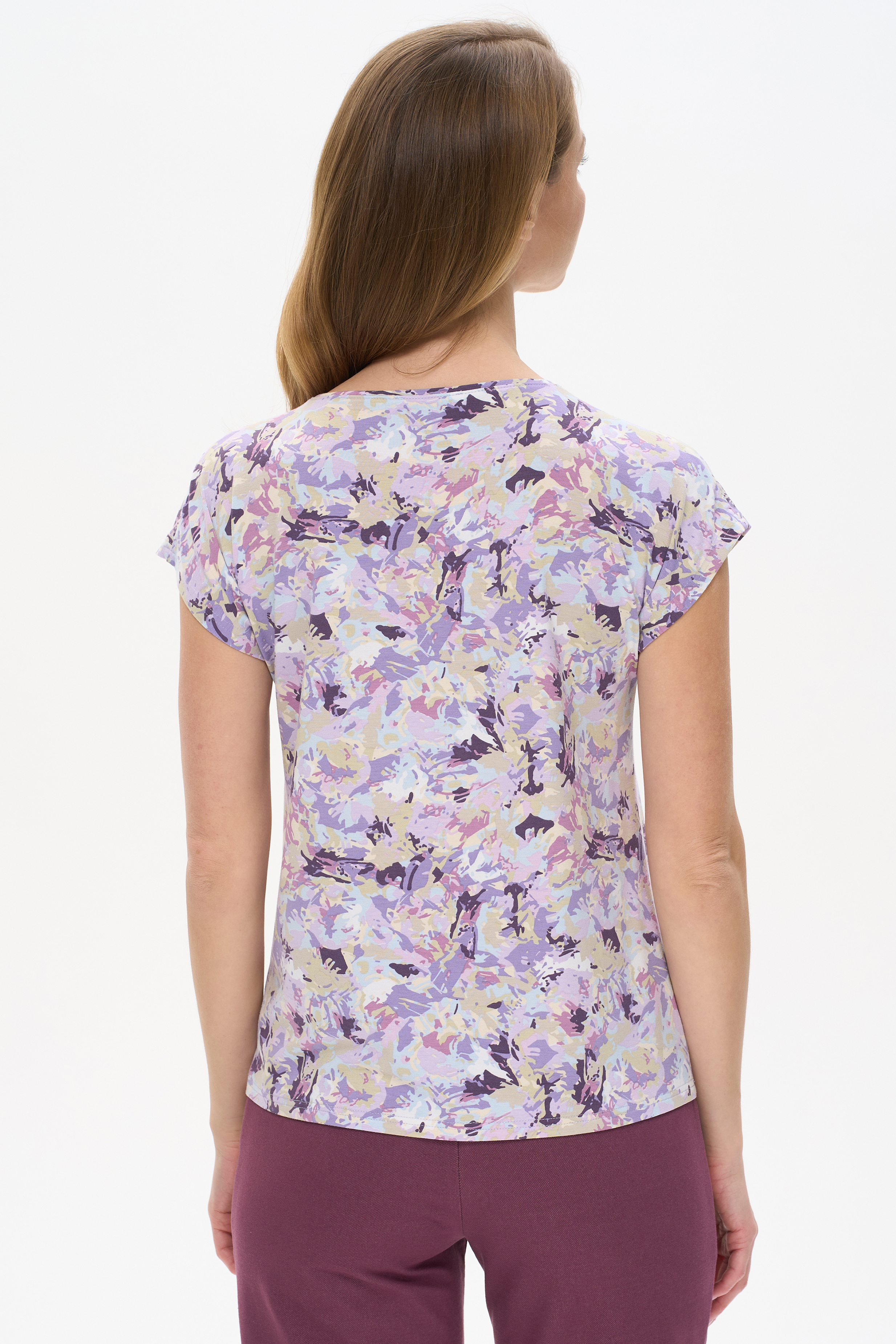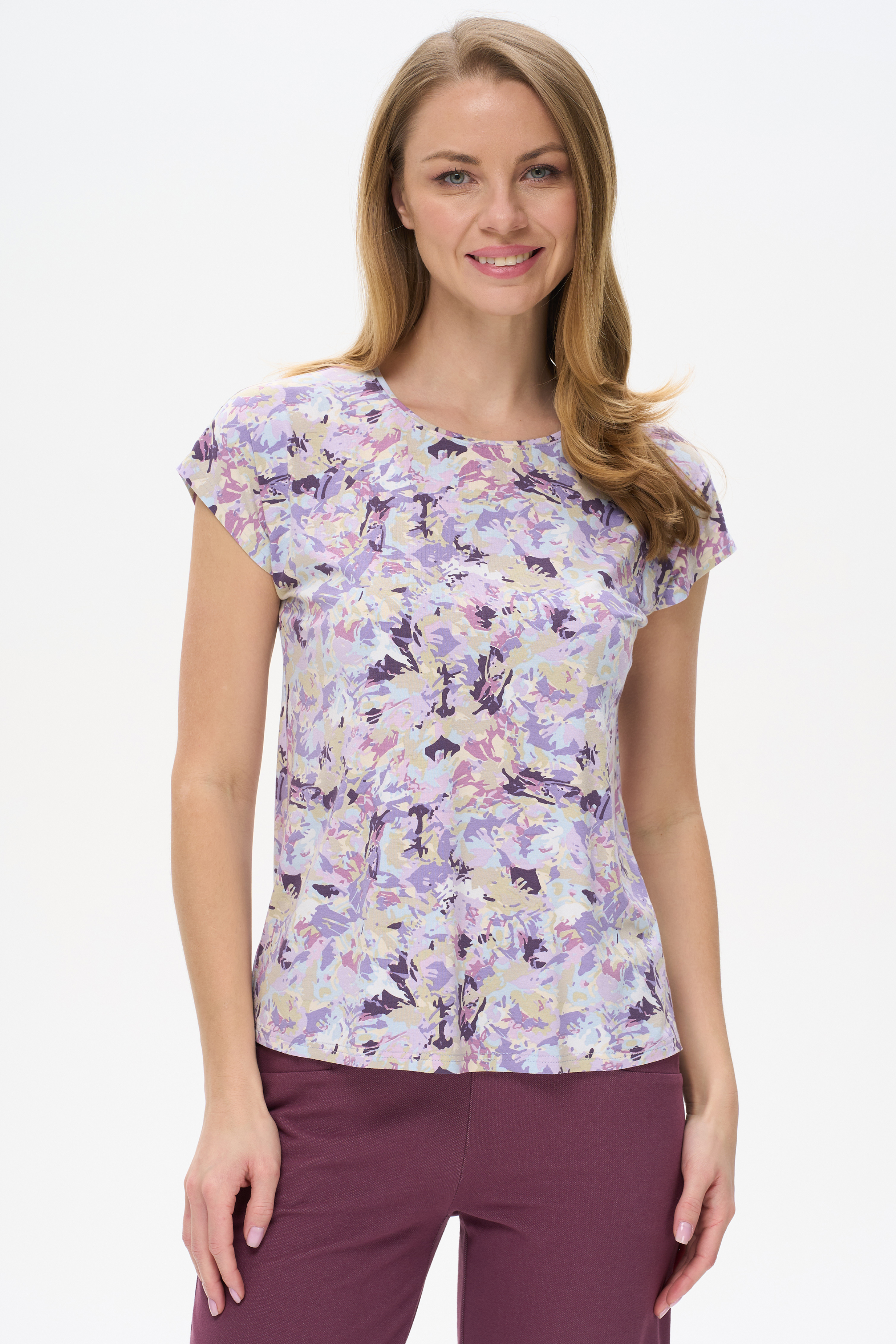 92% вискоза/ 8% эластан Блузка прямого силуэта из вискозного трикотажного полотна с эластаном. Круглый вырез горловины, цельнокроеные короткие рукава. Рост модели 175 см.