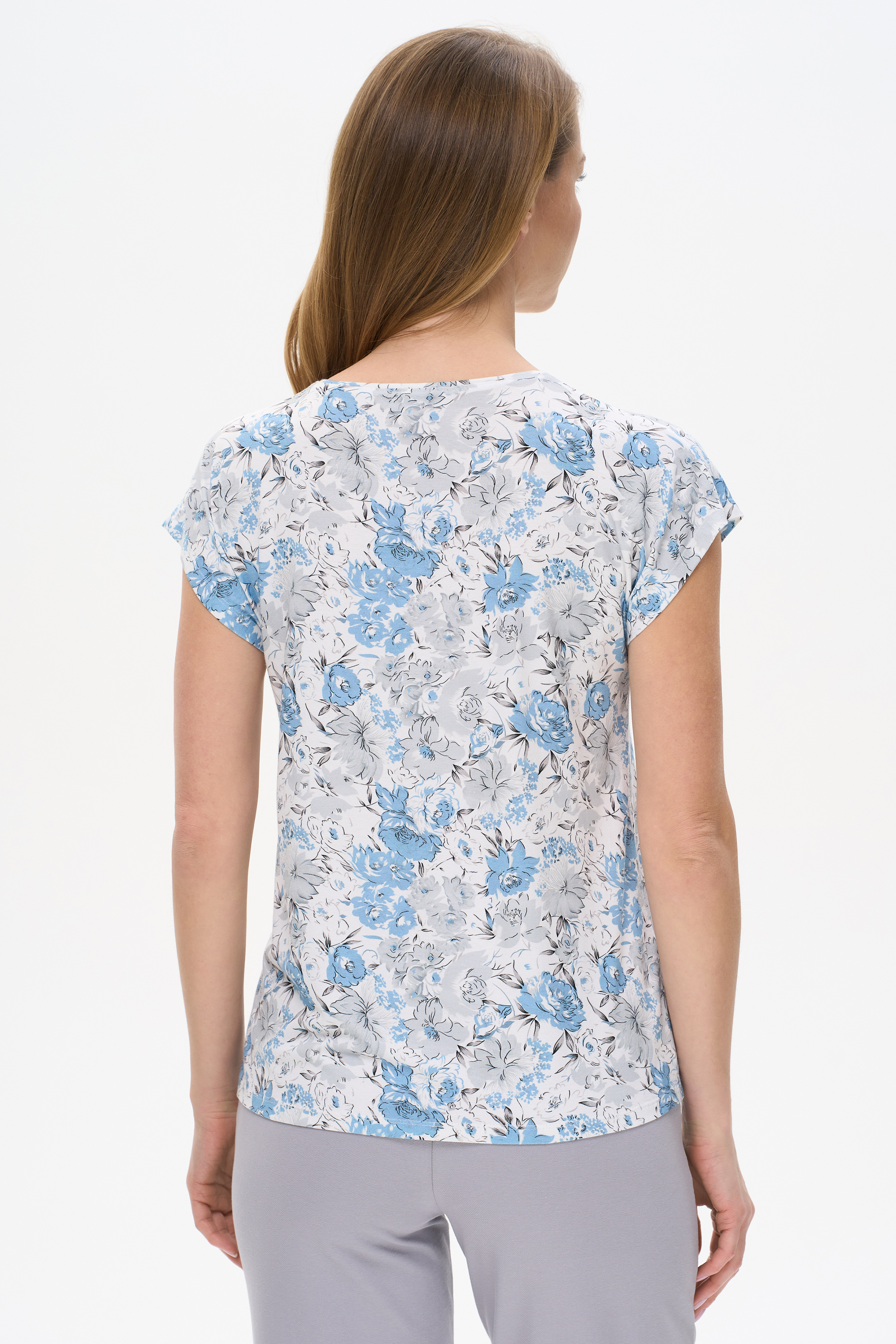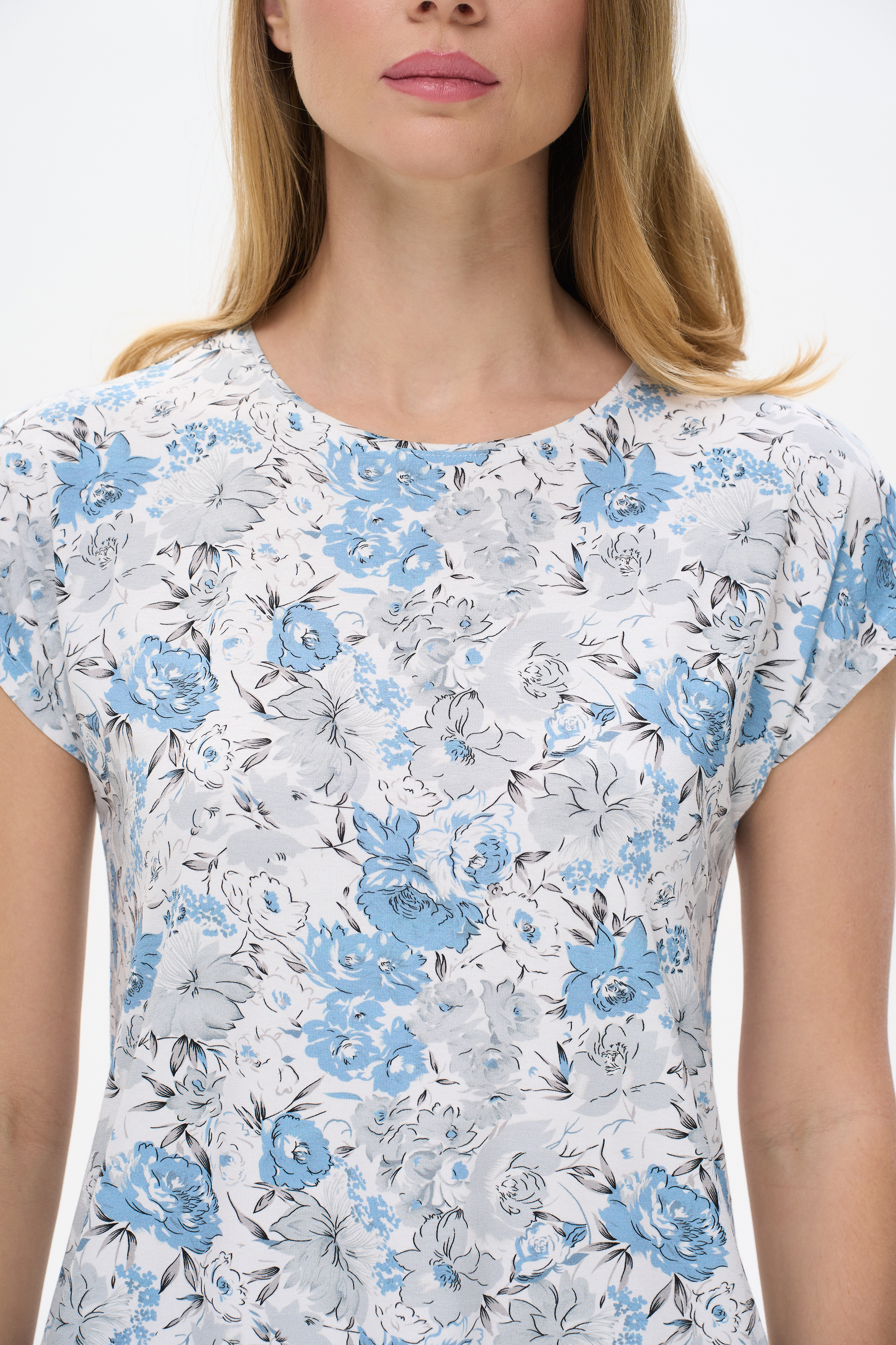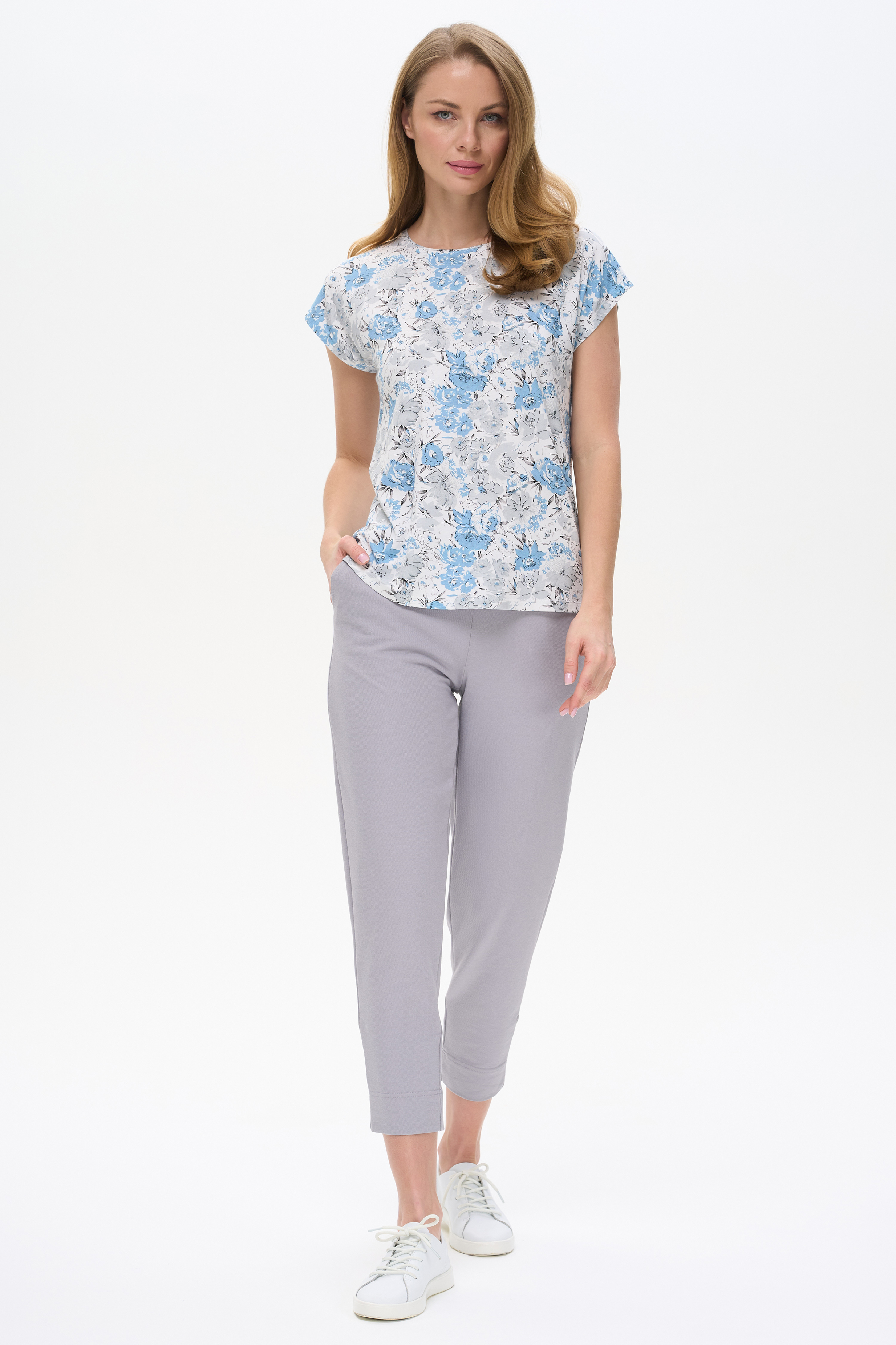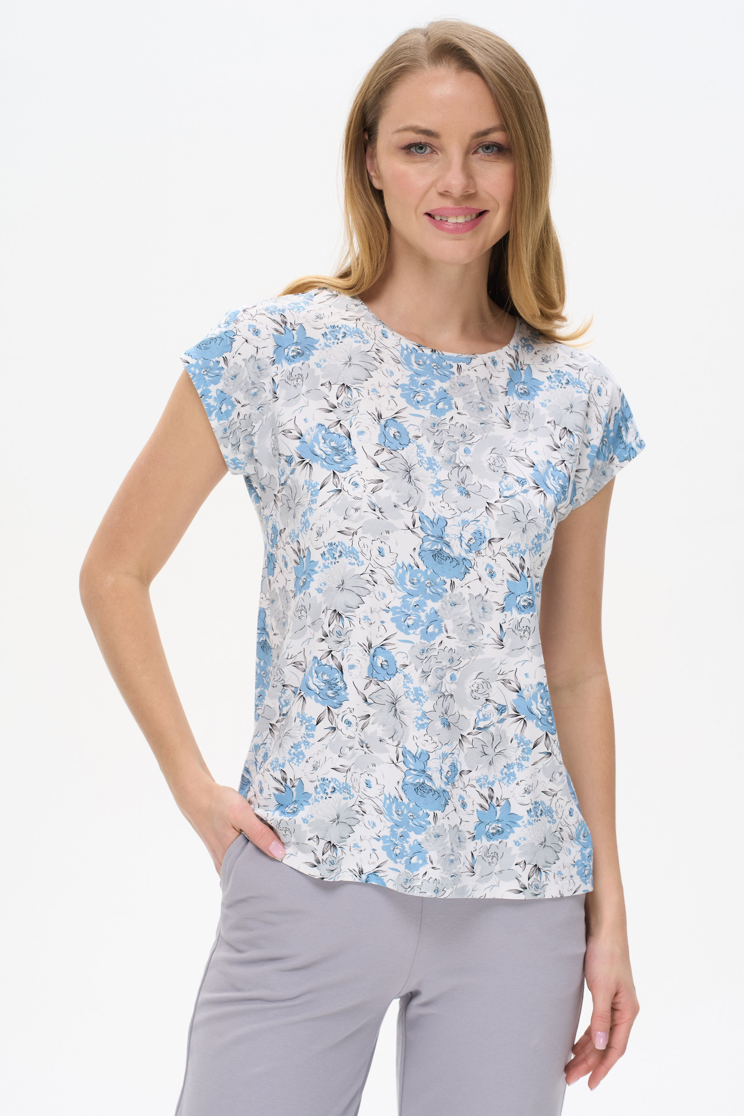 92% вискоза, 8% эластан Футболка прямого силуэта из вискозного трикотажного полотна с эластаном. Круглый вырез горловины, цельнокроеные короткие рукава. Рост модели 175 см.