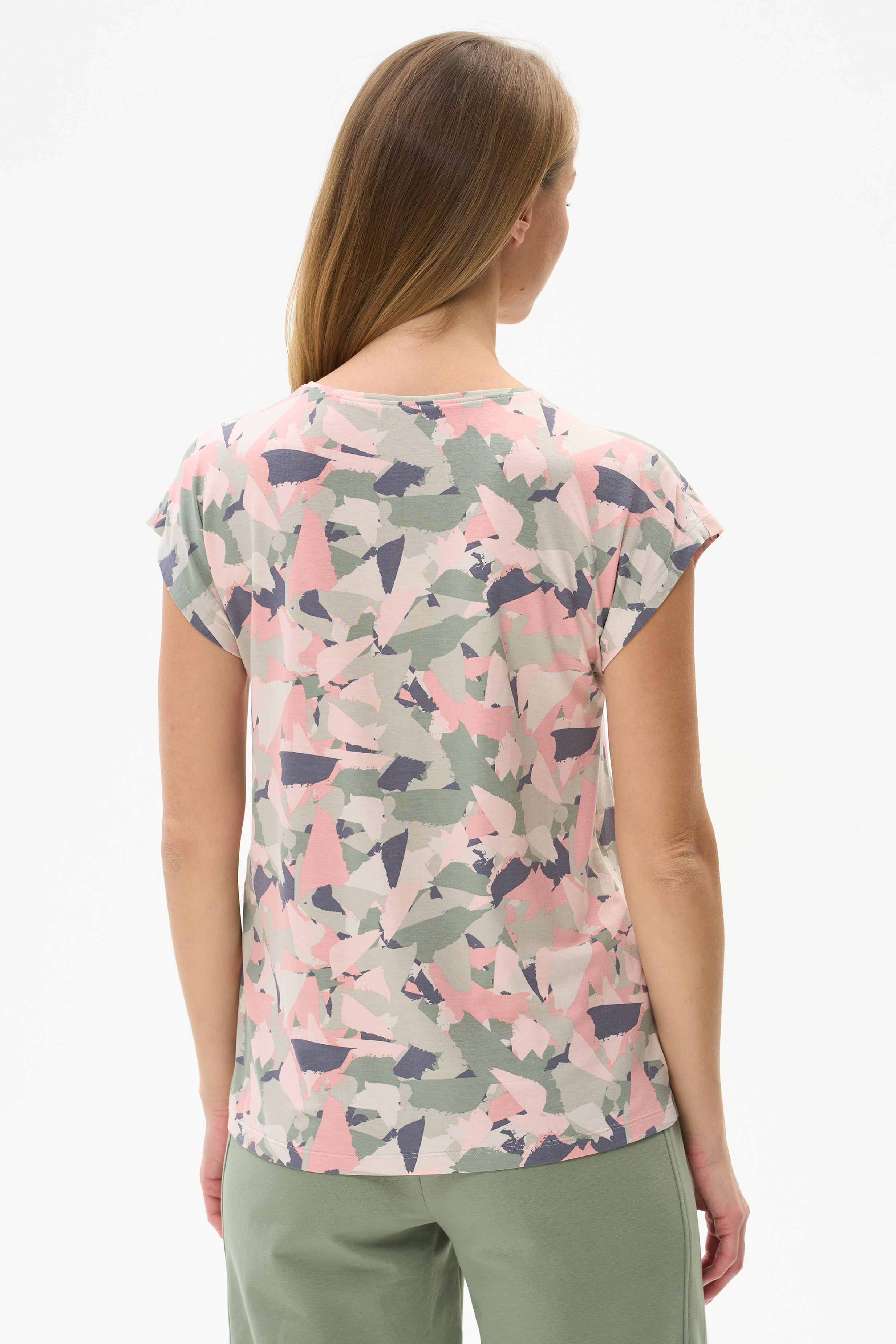 92% вискоза, 8% эластан Футболка прямого силуэта из вискозного трикотажного полотна с эластаном. Круглый вырез горловины, цельнокроеные короткие рукава. Рост модели 175 см.