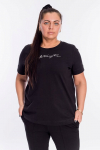 Практичная и комфортная футболка из легкой, дышащей ткани — отличный выбор для повседневного гардероба. Модель из черной кулирки с классическим круглым вырезом и свободным кроем не сковывает движения и обеспечивает комфорт в течение всего дня. Универсальный фасон подходит как мужчинам, так и женщинам. Идеально для отдыха, домашнего использования или неформальных образов. Легко сочетается с джинсами, шортами и спортивной одеждой.