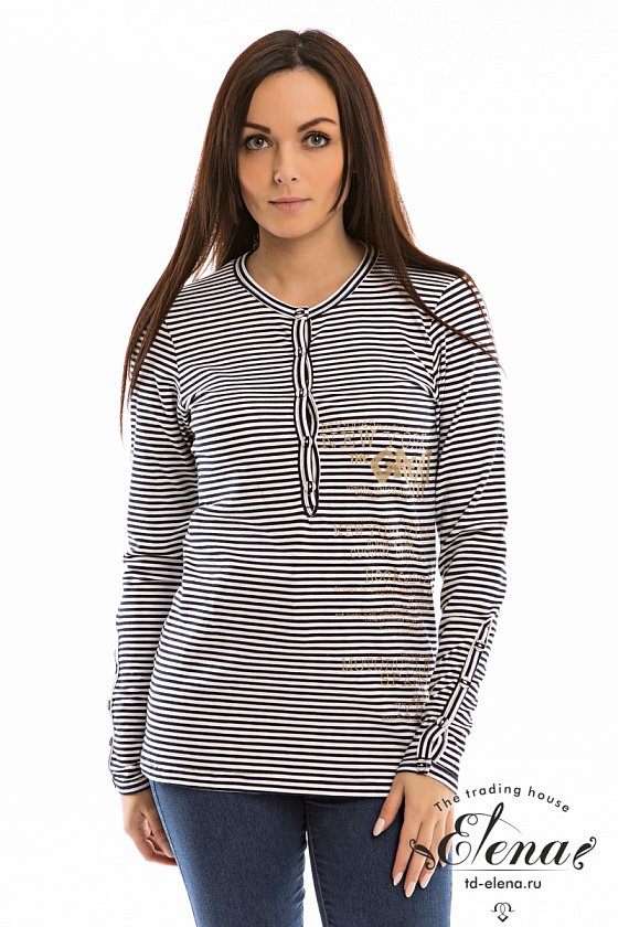 Футболка с принтом и длинными рукавами. Рукава и горловина спереди с короткой застёжкой. Отделка бейкой.