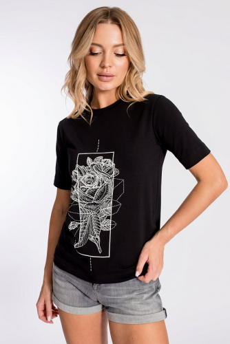 Футболка женская однотонная из кашкорсе-вискозы. Силуэт облегающий, короткий рукав, горловина с круглым вырезом, обработанным бейкой.