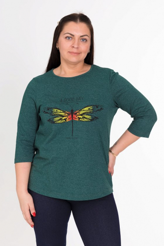 Футболка женская выполнена из кулирки. Рукава длиной 3/4, вырез горловины округлый. Спереди нанесён оригинальный принт.