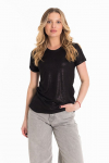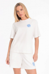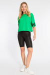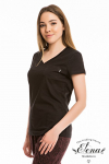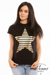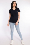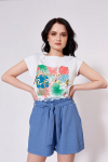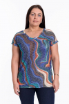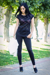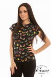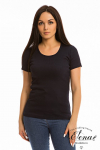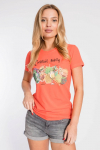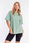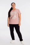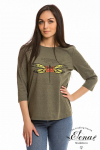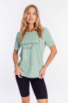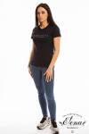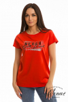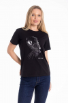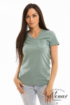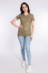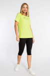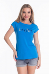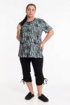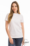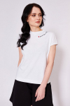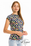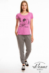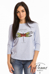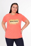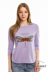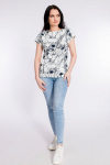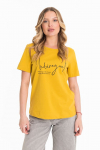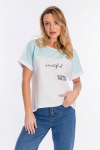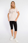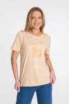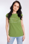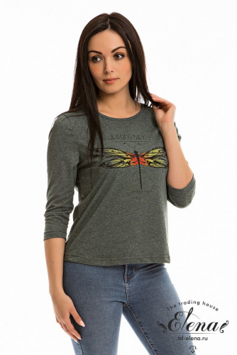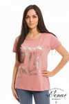 Футболка женская выполнена из кулирки. Рукава длиной 3/4, вырез горловины округлый. Спереди нанесён оригинальный принт.