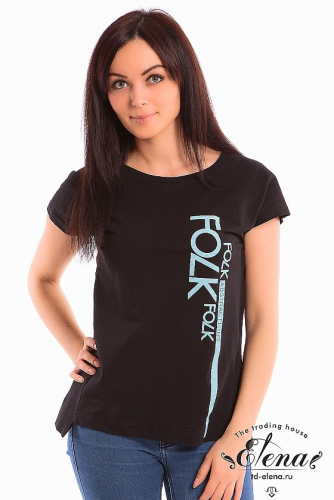 Футболка выполнена из вискозы с набивным рисунком. С коротким втачным рукавом, спереди кружевная кокетка.