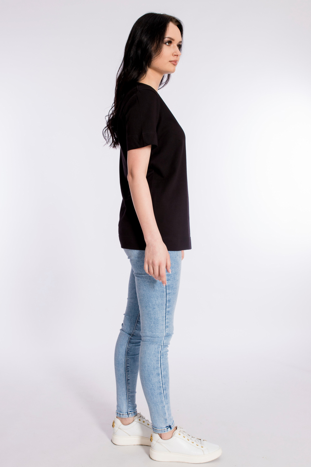 Футболка из однотонной кулирки, 100% хлопок. С коротким втачным рукавом и притачной планкой по горловине. Хлопок 100%