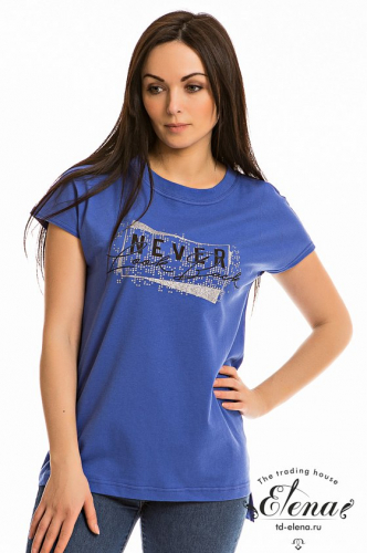 Футболка выполнена из хлопкового полотна c добавлением лайкры. Со спущенной линией плеча и горловиной лодочка. Спереди нанесён принт.
