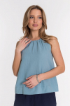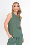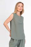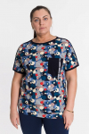 Женская футболка выполнена из кулирки, 100% хлопок. Вырез горловины фигурный, низ рукавов и карманы с контрастной отделкой.
