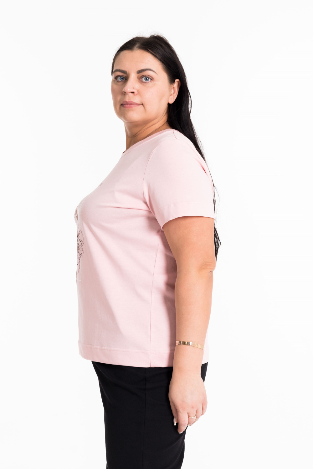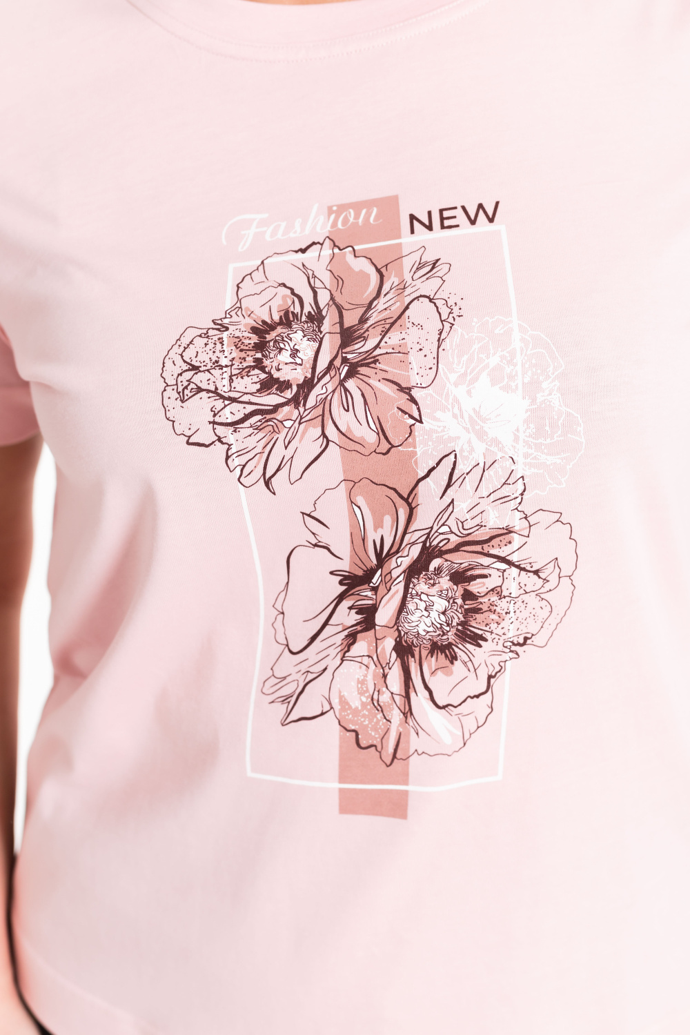 Футболка из кулирки, 100% хлопок, с коротким втачным рукавом и притачной планкой по горловине. Спереди нанесён оригинальный принт. Хлопок 100%