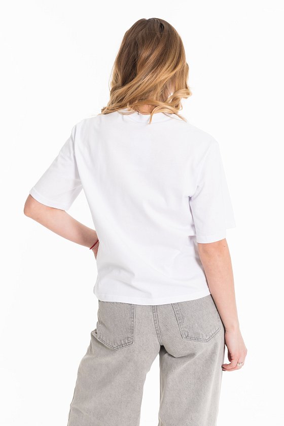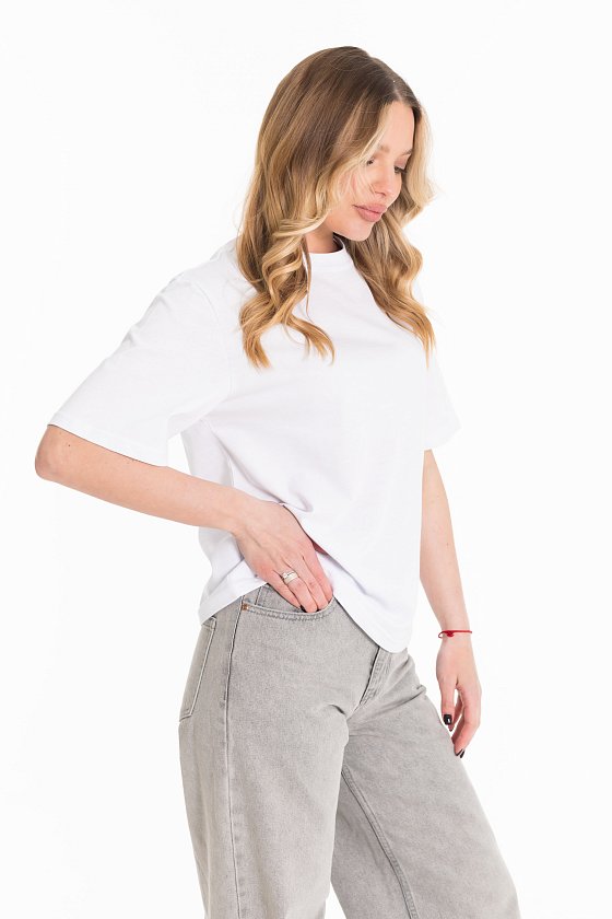 Женская футболка изготовлена из хлопкового полотна, что обеспечивает комфорт и хорошую воздухопроницаемость. Футболка имеет короткий рукав и круглый вырез горловины, что придает ей классический стильный вид. Такая модель базового белого цвета отлично сочетается с джинсами, брюками или юбкой. Изготовленная из натуральной ткани, футболка обеспечит комфорт в течение всего дня.