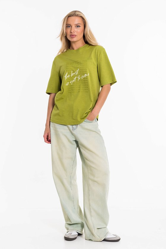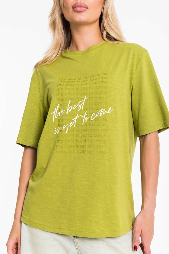 Женская футболка с принтом изготовлена из хлопкового полотна - кулирка "фламли", что обеспечивает комфорт и хорошую воздухопроницаемость. Футболка имеет короткий рукав и круглый вырез горловины, что придает ей классический стильный вид. Такая модель футболки отлично сочетается с джинсами, брюками или юбкой. Изготовленная из натуральной ткани, футболка обеспечит комфорт в течение всего дня.