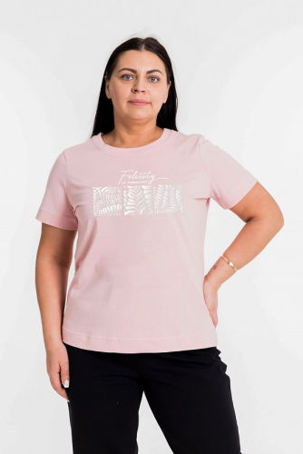 Футболка из однотонной кулирки, 100% хлопок. С коротким втачным рукавом и притачной планкой по горловине. Спереди нанесён принт.