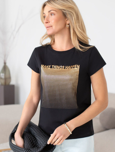 Повседневная футболка универсальна: она сочетается с джинсами, юбками или строгими брюками — легко создать как деловой образ для офиса, так и наряд для вечеринки или ужина вне дома. Матовое покрытие создает благородный блеск без лишней яркости, благодаря чему футболка смотрится свежо и актуально. кофейный