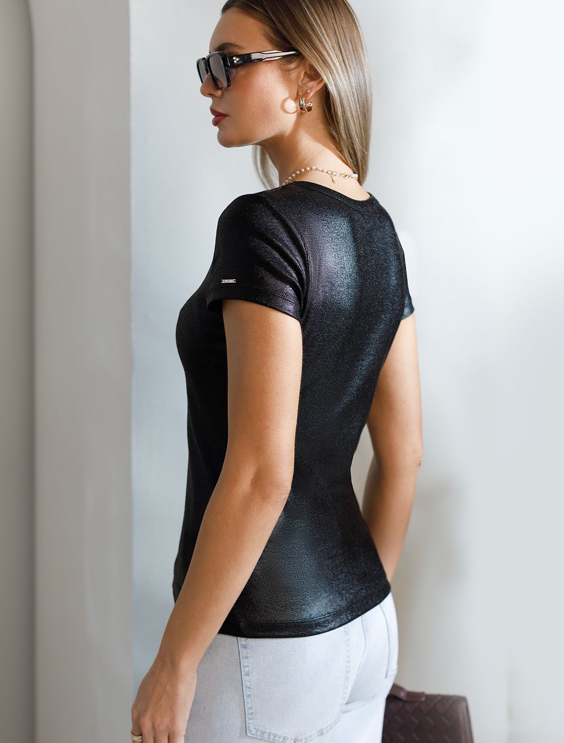 Повседневная футболка универсальна: она сочетается с джинсами, юбками или строгими брюками — легко создать как деловой образ для офиса, так и наряд для вечеринки или ужина вне дома. Матовое покрытие создает благородный блеск без лишней яркости, благодаря чему футболка смотрится свежо и актуально.
