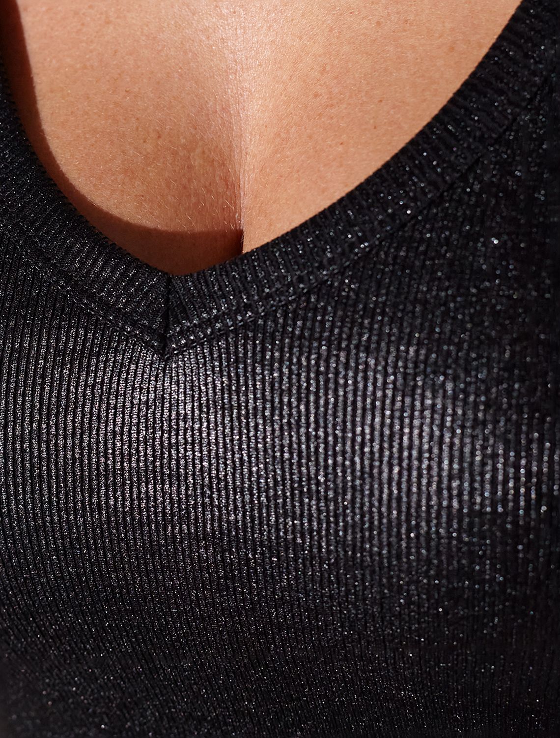 Футболка облегающая из хлопка в рубчик с V вырезом и матовым покрытием металлик D49.121 черный