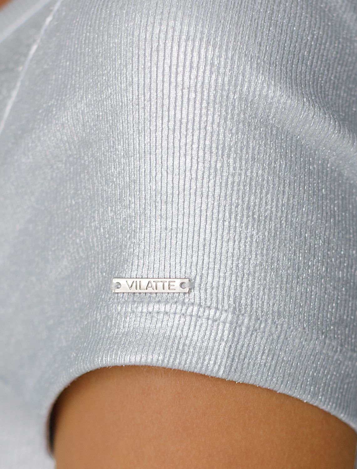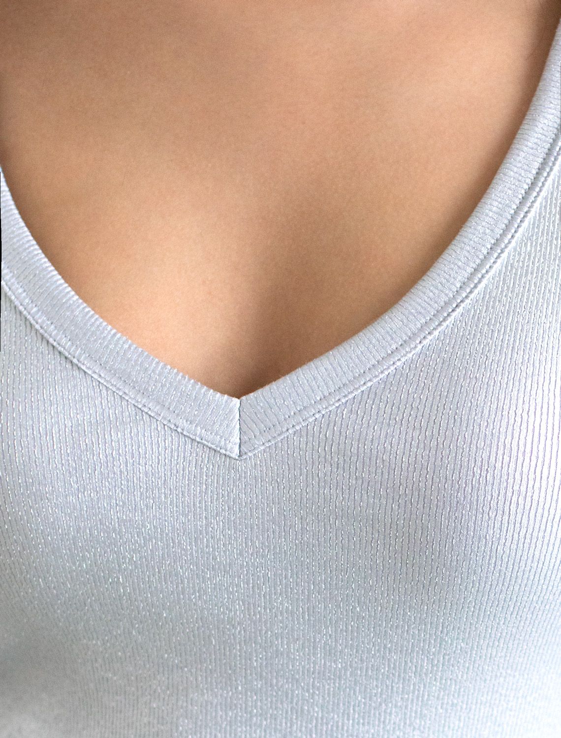 Футболка облегающая из хлопка в рубчик с V вырезом и матовым покрытием металлик D49.121 матовое серебро
