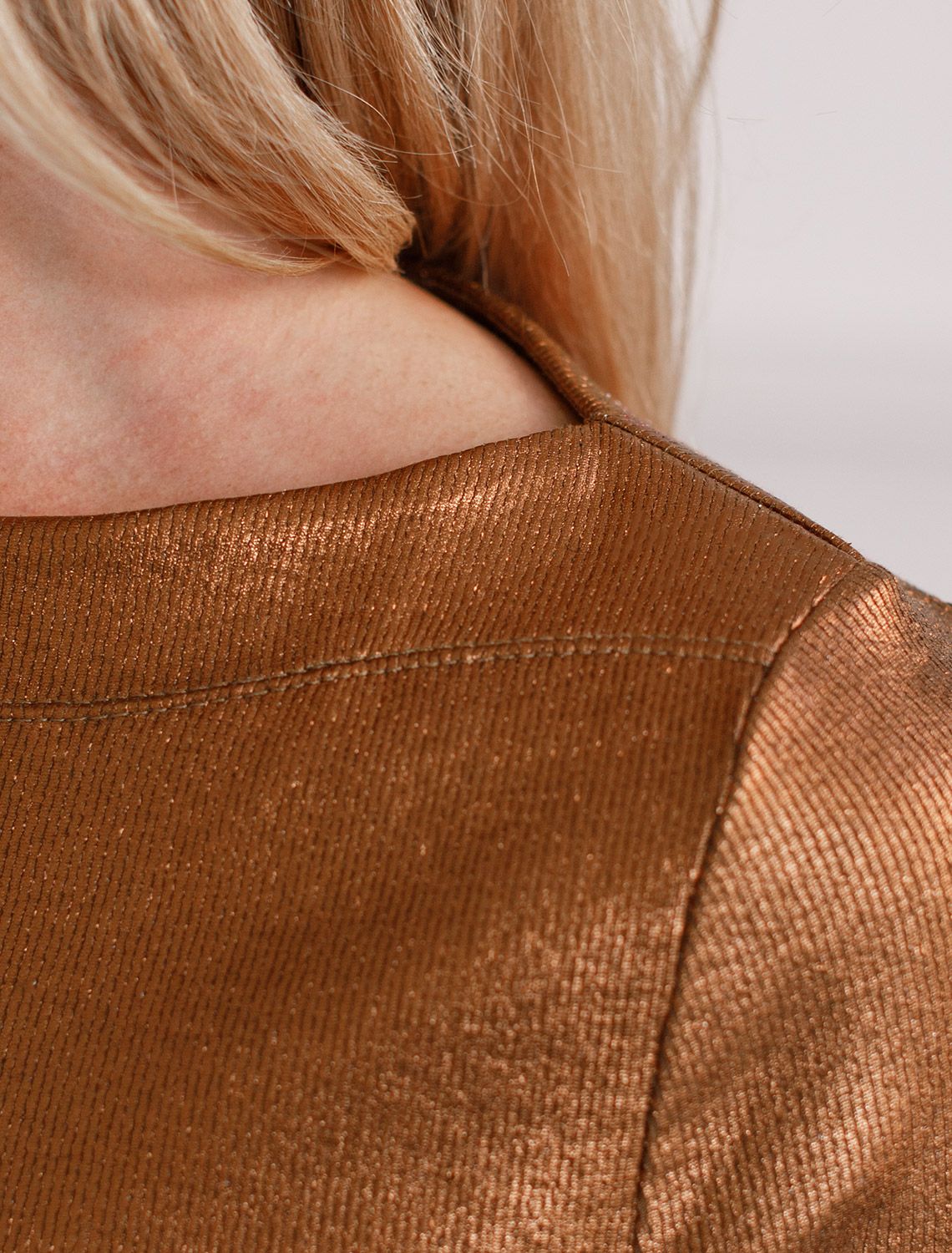 Стильная футболка кофейного цвета с вырезом лодочка выполнена из премиального хлопка с добавлением эластана. Эффектное матовое бронзовое покрытие металлик с серебристыми вкраплениями придает футболке изысканный блеск. Вырез лодочка добавляет элегантности и женственности образу. Мелкий рубчик визуально вытягивает силуэт, за счет эластана в составе материал прекрасно тянется и садится на любую фигуру, в том числе большие размеры. Ткань износостойкая, сохраняет свой превоначальный вид даже после многочисленных стирок, отличается мягкостью и приятными тактильными ощущениями, такой материал не раздражает кожу, дарит ощущение уюта даже при длительном ношении, а воздухопроницаемость позволяет коже свободно дышать.