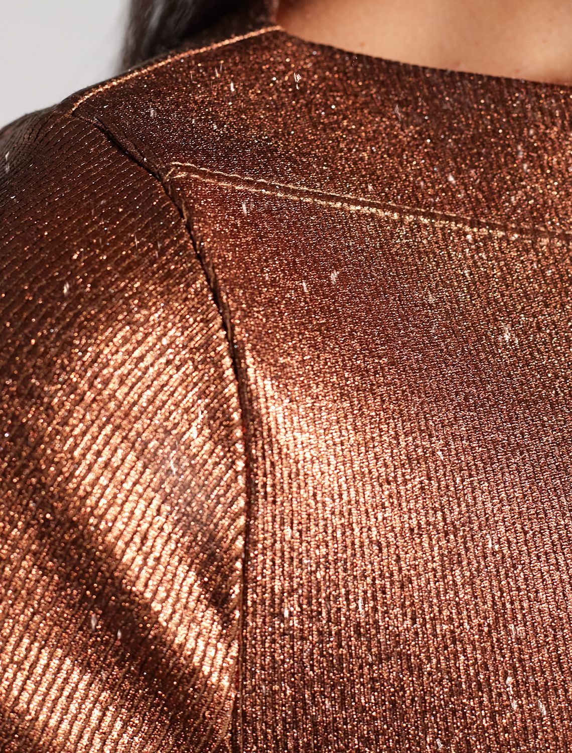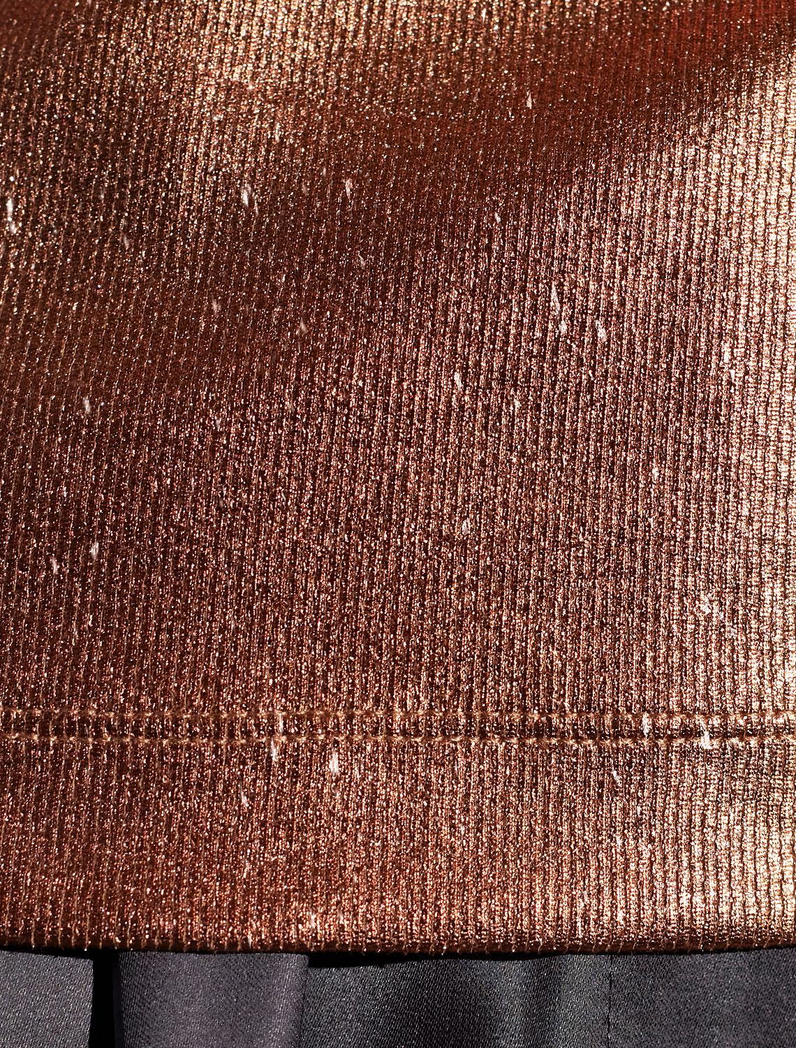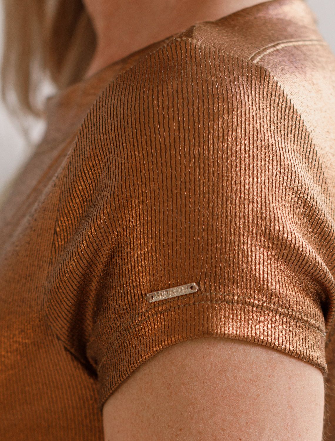 Футболка облегающая из хлопка в рубчик с вырезом лодочка с матовым покрытием металлик D49.093 кофейный