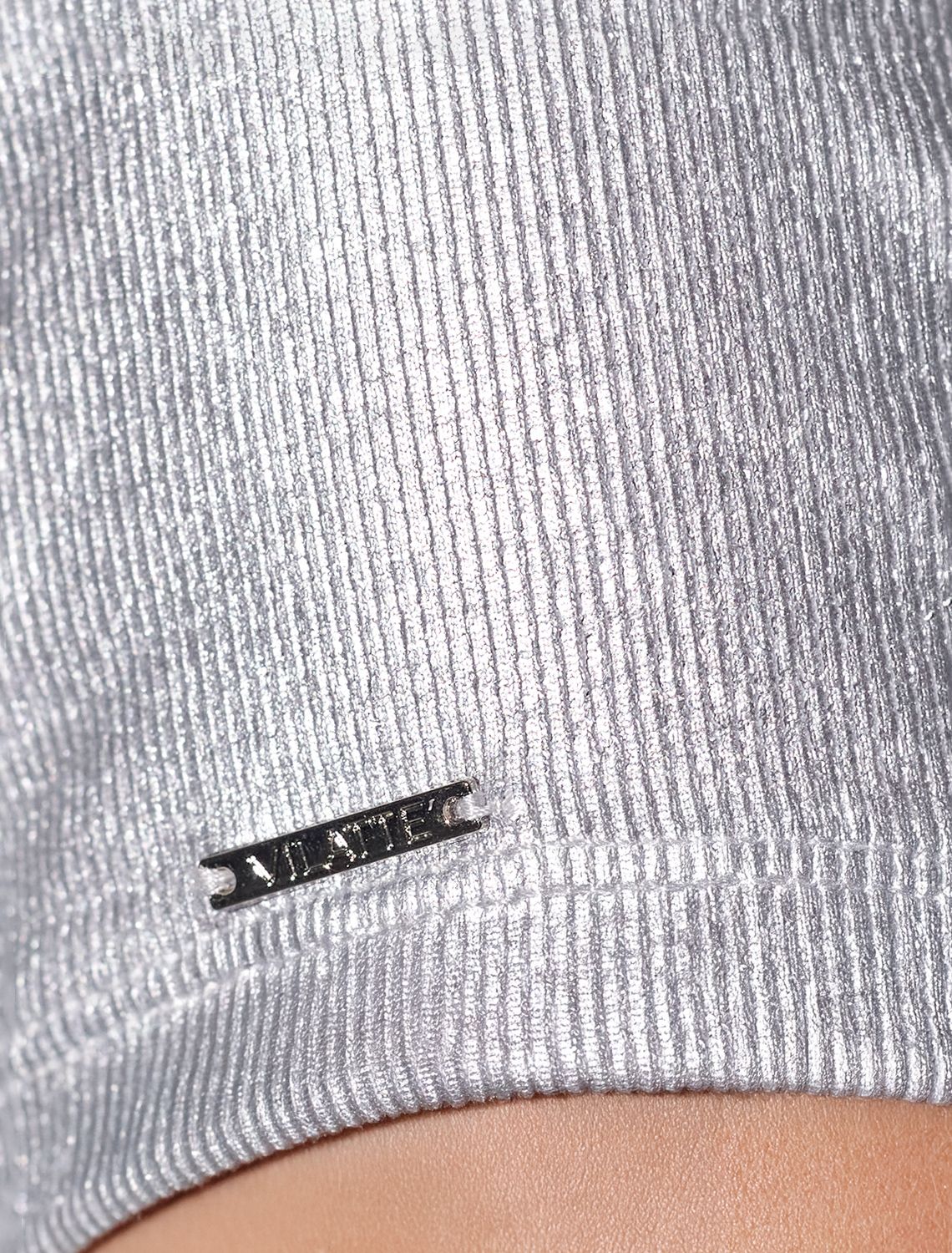 Футболка облегающая из хлопка в рубчик с вырезом лодочка с матовым покрытием металлик D49.093 матовое серебро