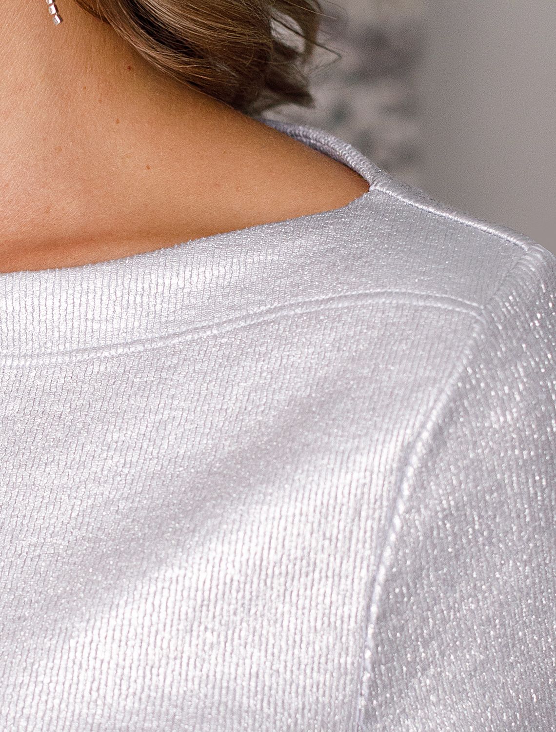 Стильная футболка серебристого цвета с вырезом лодочка выполнена из премиального хлопка с добавлением эластана. Эффектное матовое покрытие металлик придает футболке изысканный блеск. Вырез лодочка добавляет элегантности и женственности образу. Мелкий рубчик визуально вытягивает силуэт, за счет эластана в составе материал прекрасно тянется и садится на любую фигуру, в том числе большие размеры. Ткань износостойкая, сохраняет свой превоначальный вид даже после многочисленных стирок, отличается мягкостью и приятными тактильными ощущениями, такой материал не раздражает кожу, дарит ощущение уюта даже при длительном ношении, а воздухопроницаемость позволяет коже свободно дышать.