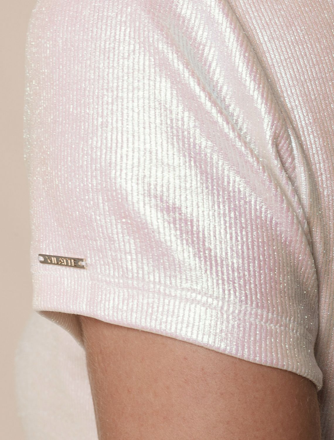 Футболка облегающая из хлопка в рубчик с вырезом лодочка с матовым покрытием металлик D49.093 перламутровый