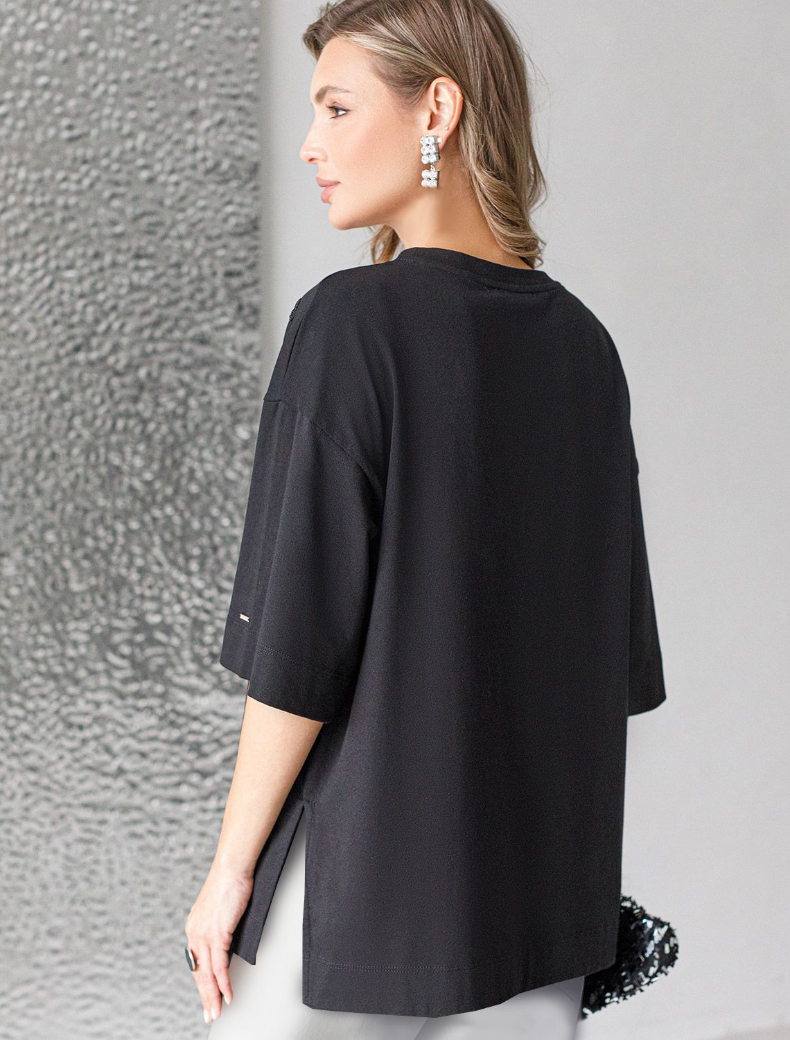 Футболка оверсайз с принтом пайетками из премиального хлопка с эластаном D49.125 черный_пайетки