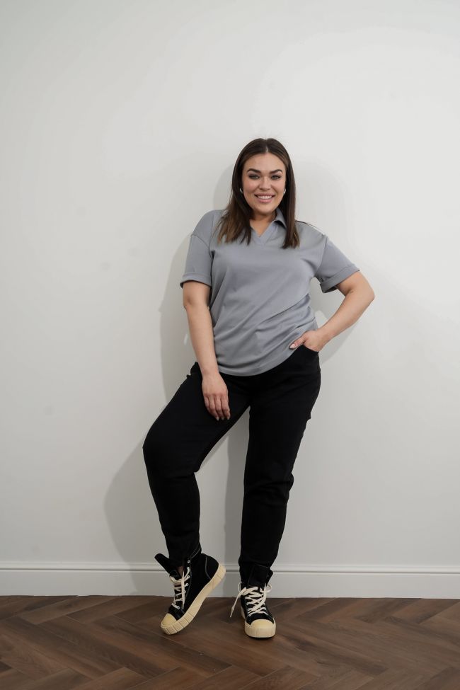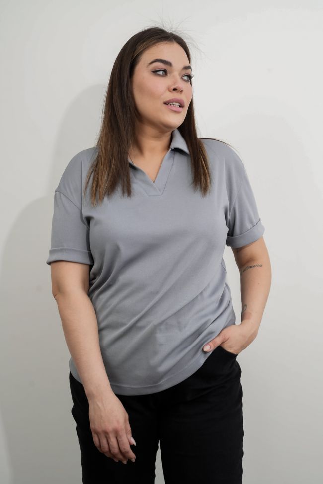 серый Комфортная футболка-поло полуприлегающего силуэта из трикотажа в рубчик. Горловина оформлена удобным V-образным вырезом с воротником типа "Поло" который позволяет создать неповторимый образ. Перед и спинка цельные. Рукава втачные, короткие с манжетой. Футболка поло - это идеальный выбор для тех, кто ценит комфорт и практичность. Легкая и удобная модель станет незаменимым элементом вашего гардероба.