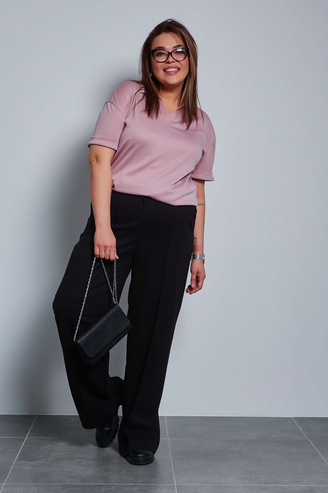 розовый Комфортная футболка-поло полуприлегающего силуэта из трикотажа в рубчик. Горловина оформлена удобным V-образным вырезом с воротником типа "Поло" который позволяет создать неповторимый образ. Перед и спинка цельные. Рукава втачные, короткие с манжетой. Футболка поло - это идеальный выбор для тех, кто ценит комфорт и практичность. Легкая и удобная модель станет незаменимым элементом вашего гардероба.