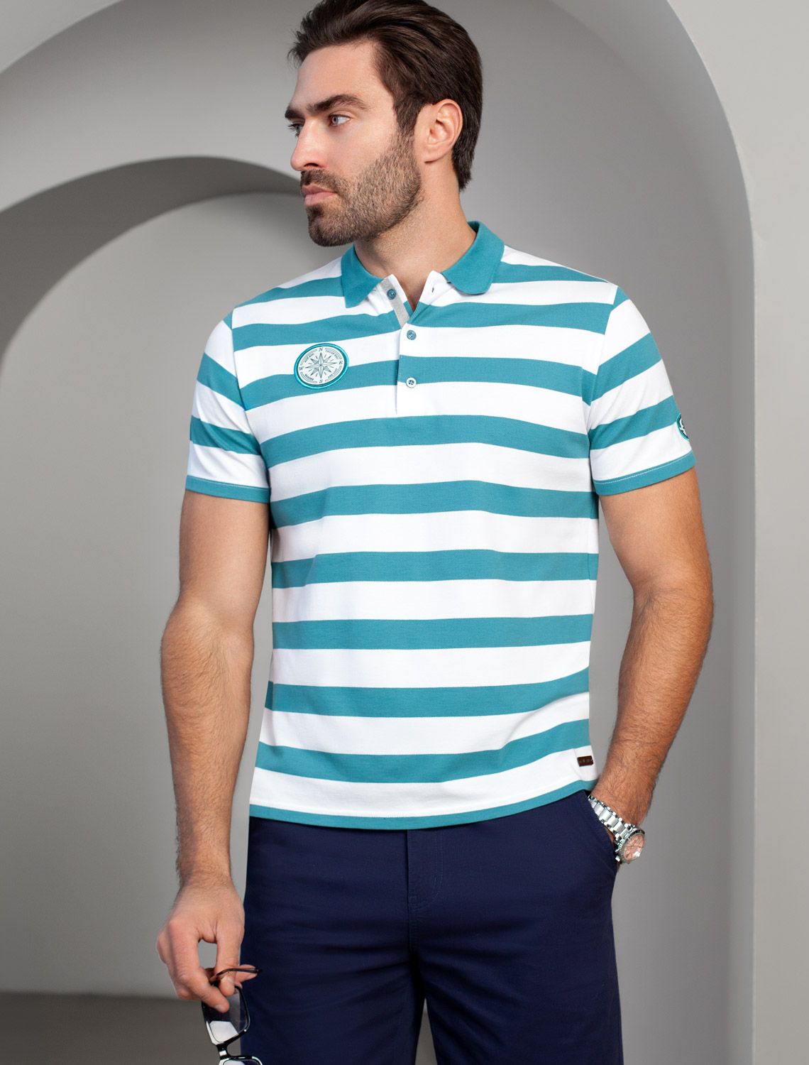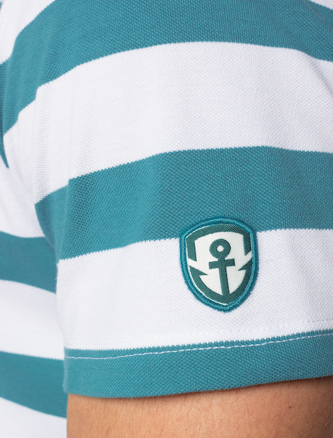 Футболка-поло выполнена из фактурного трикотажа. Модель дополнена принтом-нашивкой в морской стилистике и фирменным логотипом бренда из эко-кожи. Премиальный хлопок с эластаном обеспечивает абсолютный комфорт и сохраняет безупречный внешний вид в течении долгого времени. Материал хорошо пропускает воздух, и поддерживает оптимальный микроклимат в жаркую погоду. морская волна-белый