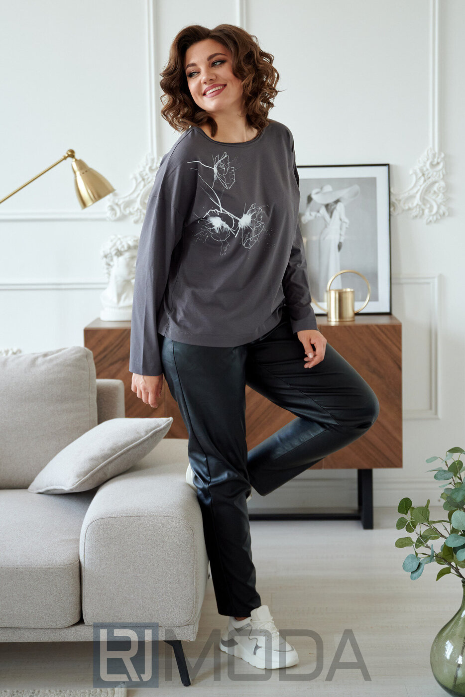 "Футболка женская , полуприлегающего силуэта из трикотажной ткани. По переду расположен принт.Спинка со средним швом.Рукав спущенный.