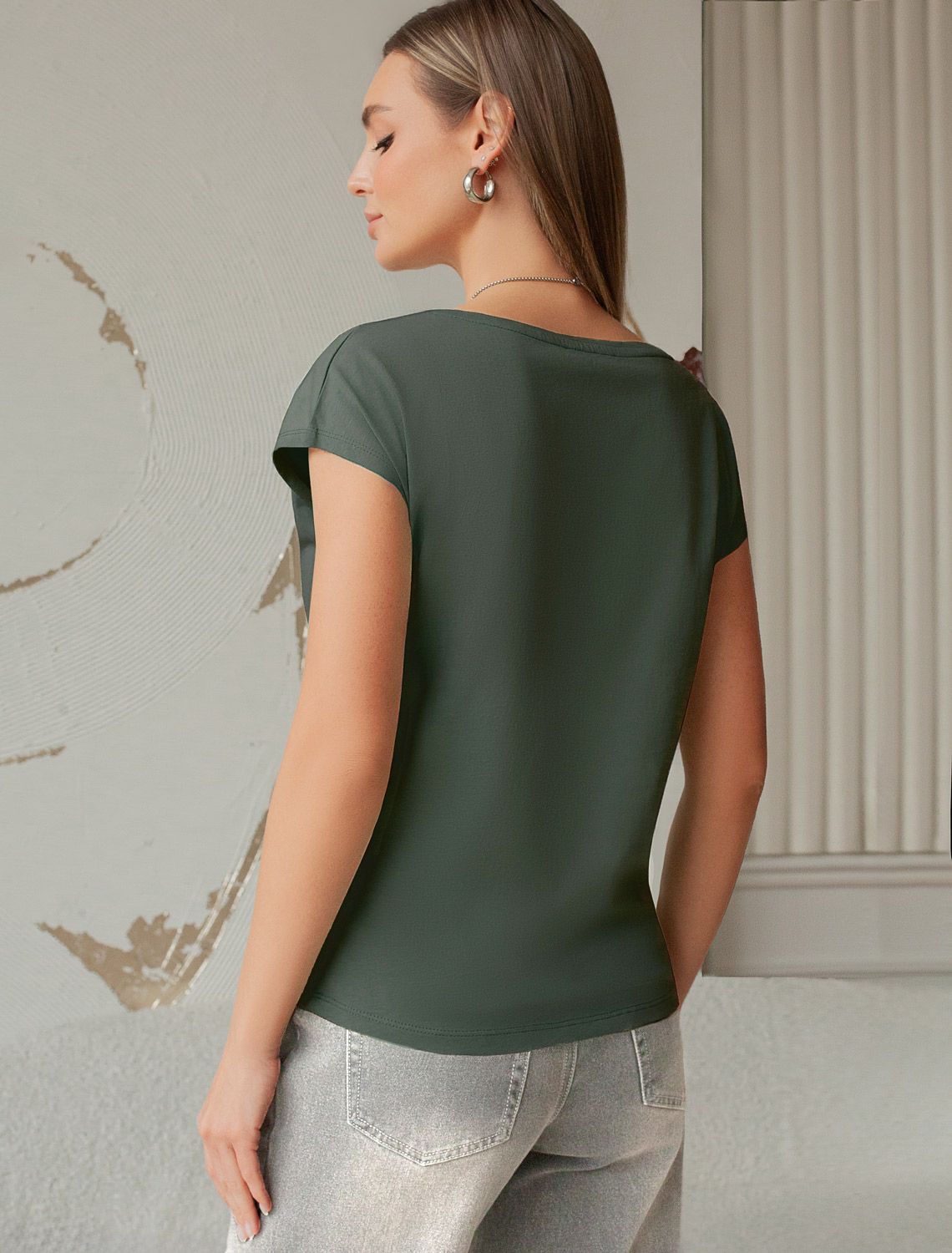 Футболка с цельнокроеным рукавом D49.088 т.оливковый