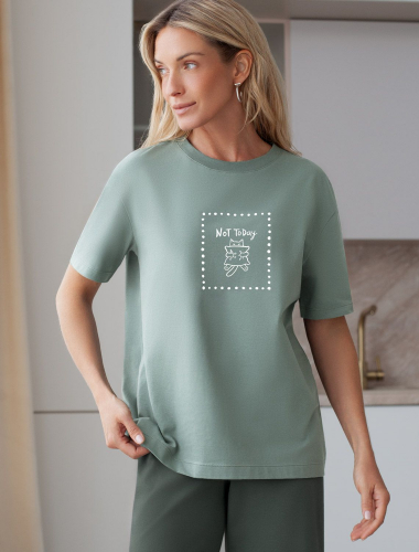 Футболка с принтом свободная эластичная из премиального хлопка D49.136 св.оливковый_not today