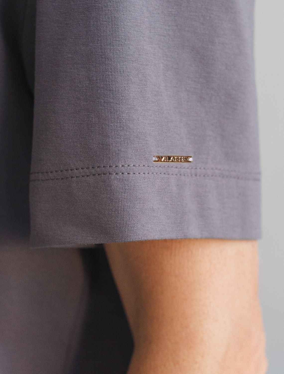Футболка темно-серого цвета изготовлена из премиального хлопка с эластаном, она обеспечивает невероятное ощущение уюта и легкости. Натуральный материал сохраняет форму и цвет после множества стирок, обеспечивая долговечность изделия, а его высокая воздухопроницаемость создает ощущение свежести даже в течение долгого дня.