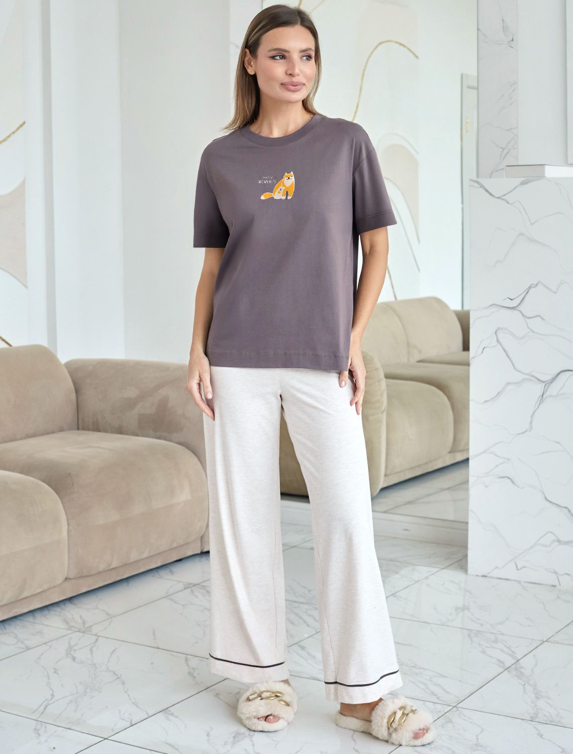 Футболка кофейного цвета изготовлена из премиального 100% хлопка, благодаря чему изделие приятно прилегает к телу, не вызывает дискомфорта и идеально подходит для чувствительной кожи. Натуральный материал сохраняет форму и цвет после множества стирок, обеспечивая долговечность изделия, а его высокая воздухопроницаемость создает ощущение свежести даже в течение долгого дня. Особое внимание привлекает стильный принт контрастного цвета в виде котиков с надписью. Перевод надписи: Love moments - Моменты любви. Принт выполнен красками с устойчивым покрытием, который добавляет изделию оригинальности и позволяет выразить индивидуальность. Свободный крой футболки дарит удобство и не стесняет движений, что делает ее идеальной для повседневной носки или активного отдыха, подчеркивает современный взгляд на моду. Подойдет девушкам и женщинам на любую фигуру, вы будете чувствовать себя в ней уверенно и комфортно. Лаконичный современный принт делает изделие универсальным: можно создавать стильные образы для прогулок, встреч, занятий спортом и домашних дел. Базовая футболка подходит для любой ситуации и сочетается с разными элементами гардероба.