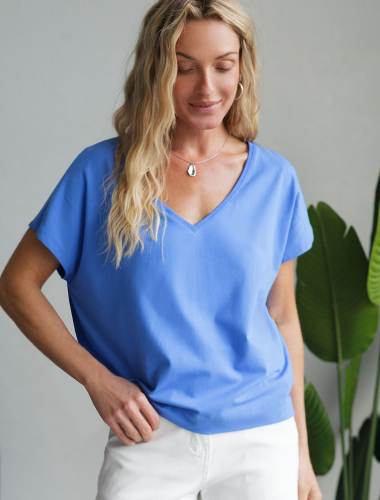 Стильная свободная футболка василькового цвета с выразительным V-вырезом создана для девушек и женщин, которые ценят комфорт и натуральность. Прямой крой обеспечивают непревзойденную легкость в теплую и жаркую погоду, позволяя телу дышать. Натуральный хлопок премиального качества — отличается дышащими свойствами и высокой износостойкостью, подходит для самой чувствительной кожи. V вырез гармонично подчеркивает линию шеи, такой вырез визуально удлиняет силуэт, подчеркивая достоинства фигуры. Цельнокроеный рукав гарантирует свободу движений и аккуратную посадку, что особенно актуально для активного образа жизни. Подойдет на большие размеры, комфортно сидит любой фигуре. Повседневная футболка сочетается с базовыми и акцентными элементами одежды, позволяет создавать различные повседневные или яркие образы. васильковый