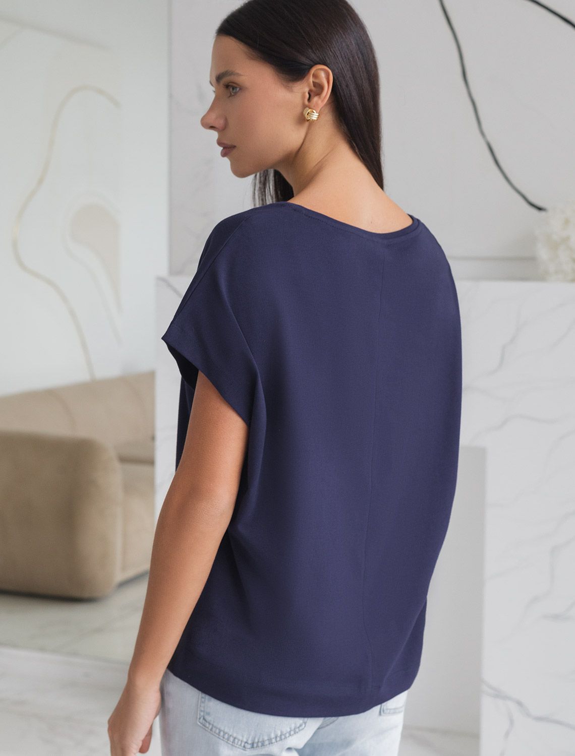 Стильная свободная футболка темно-синего цвета с выразительным V-вырезом создана для девушек и женщин, которые ценят комфорт и натуральность. Прямой крой обеспечивают непревзойденную легкость в теплую и жаркую погоду, позволяя телу дышать. Натуральный хлопок премиального качества — отличается дышащими свойствами и высокой износостойкостью, подходит для самой чувствительной кожи. V вырез гармонично подчеркивает линию шеи, такой вырез визуально удлиняет силуэт, подчеркивая достоинства фигуры. Цельнокроеный рукав гарантирует свободу движений и аккуратную посадку, что особенно актуально для активного образа жизни. Подойдет на большие размеры, комфортно сидит любой фигуре. Повседневная футболка сочетается с базовыми и акцентными элементами одежды, позволяет создавать различные повседневные или яркие образы.