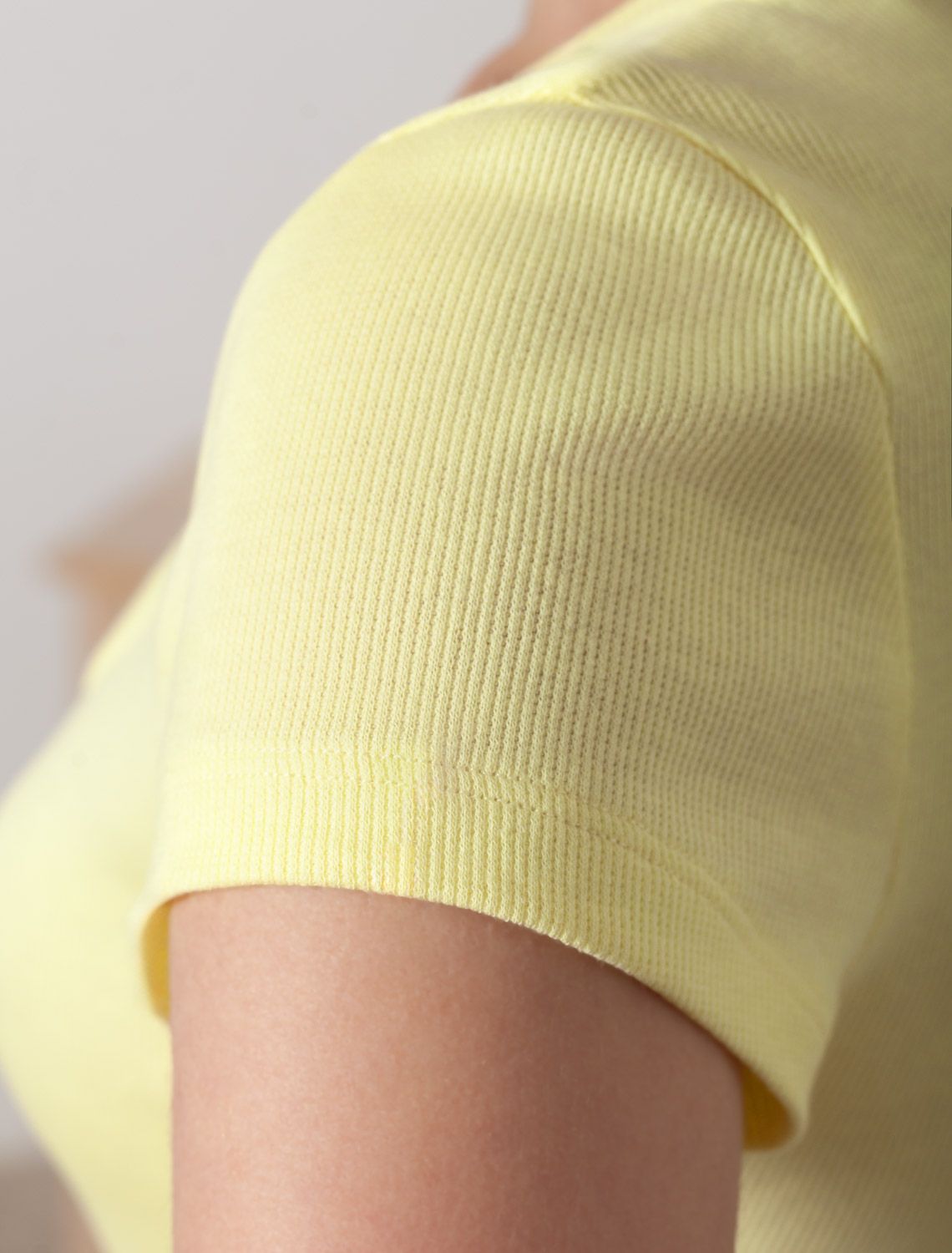 Футболка с V вырезом из фактурного трикотажа в рубчик D49.150 лимонный