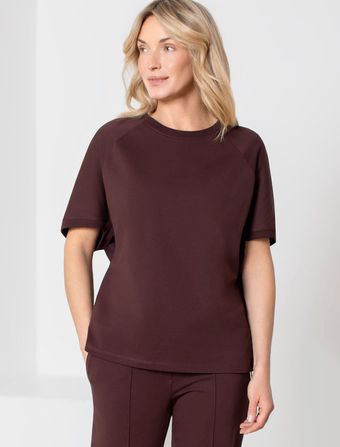 Футболка коричневого цвета свободного кроя выполнена из премиального футера двухнитки с эластаном плотностью 240 Г/м2. . Натуральный материал отличается мягкостью и приятной текстурой, позволяя коже дышать и обеспечивая максимальное удобство при носке. Наличие эластана в составе изделия гарантирует абсолютный комфорт и формоустойчивость. Круглый ворот, рукава регланы средней длины и спущенная линия плеча придают футболке стильный и современный вид, делают образ расслабленным и непринужденным, такой вариант отлично сядет на большие размеры. Плотная футболка идеально подходит для повседневной носки и незаменима для тех, кто ценит удобство и свободу движений без компромиссов по стилю.