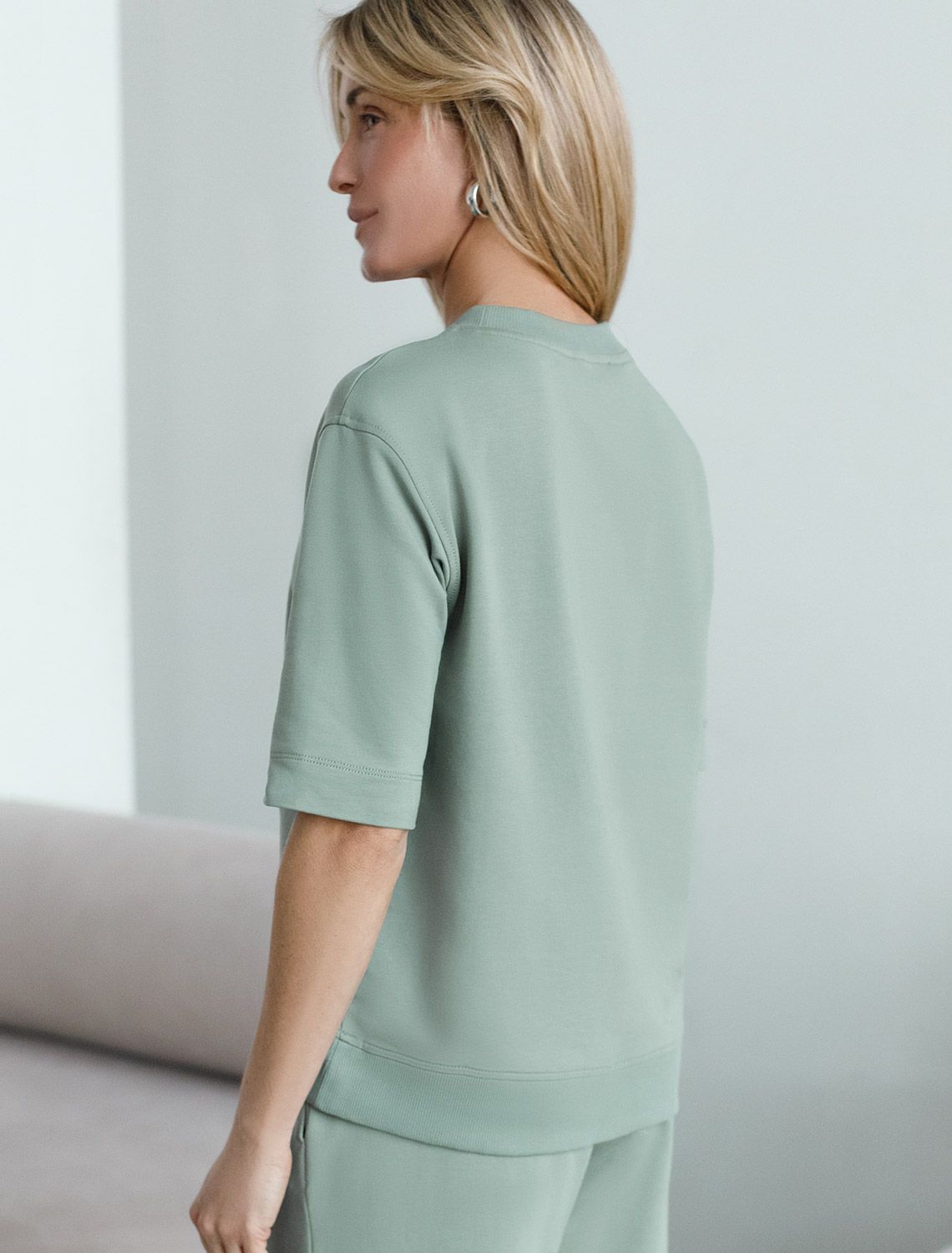 Футболка светло-оливкового цвета свободного кроя выполнена из премиального футера двухнитки с эластаном плотностью 240 Г/м2. . Натуральный материал отличается мягкостью и приятной текстурой, позволяя коже дышать и обеспечивая максимальное удобство при носке. Наличие эластана в составе изделия гарантирует абсолютный комфорт и формоустойчивость. Круглый ворот, рукава средней длины и спущенная линия плеча придают футболке стильный и современный вид, делают образ расслабленным и непринужденным, такой вариант отлично сядет на большие размеры. Футболку украшает принт виде надписи. Перевод надписи: Vintage collection - Витнажная коллекция. Плотная футболка идеально подходит для повседневной носки и незаменима для тех, кто ценит удобство и свободу движений без компромиссов по стилю.