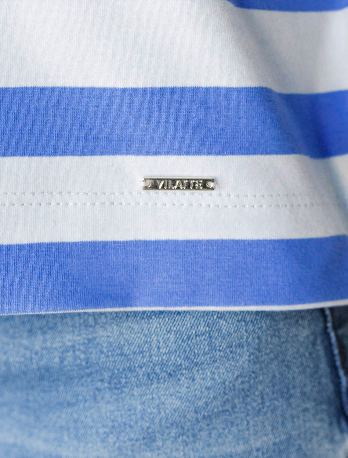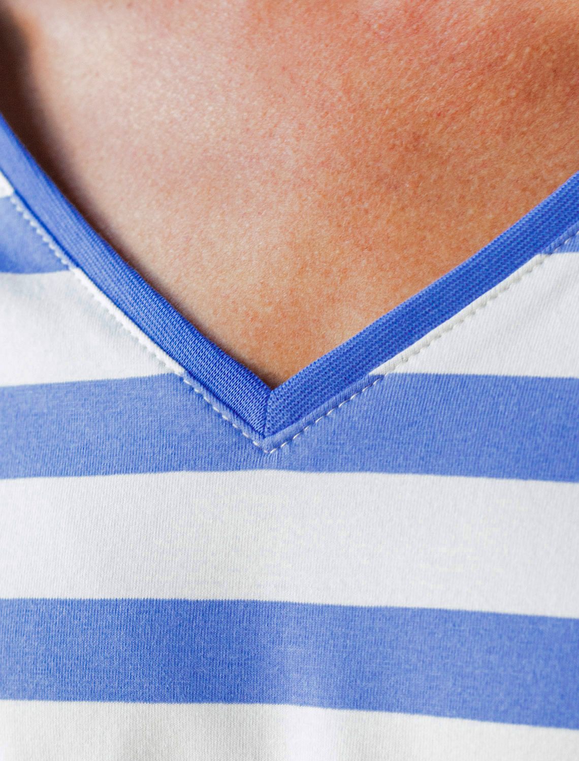 Футболка в полоску с V-вырезом и цельнокроеным рукавом из премиального хлопка D49.100 василек-белый