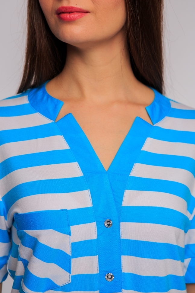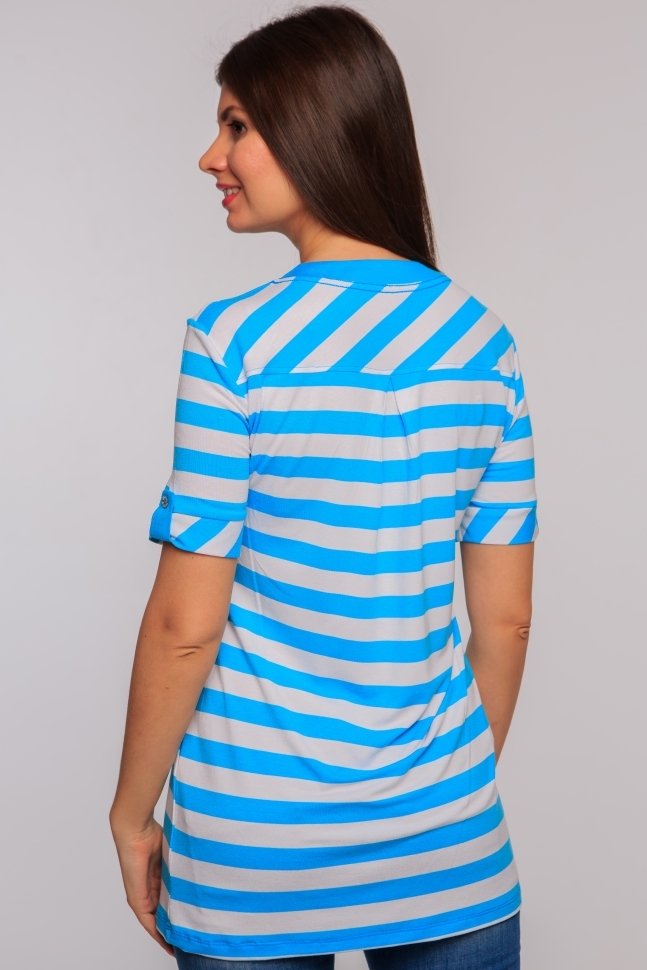 Женская трикотажная блуза полуприлегающего силуэта. Блуза с фигурной горловиной, на рукавах - паты. Рост модели на фото 170 см. Материал: вискоза (вискоза 95%, эластан 5%)