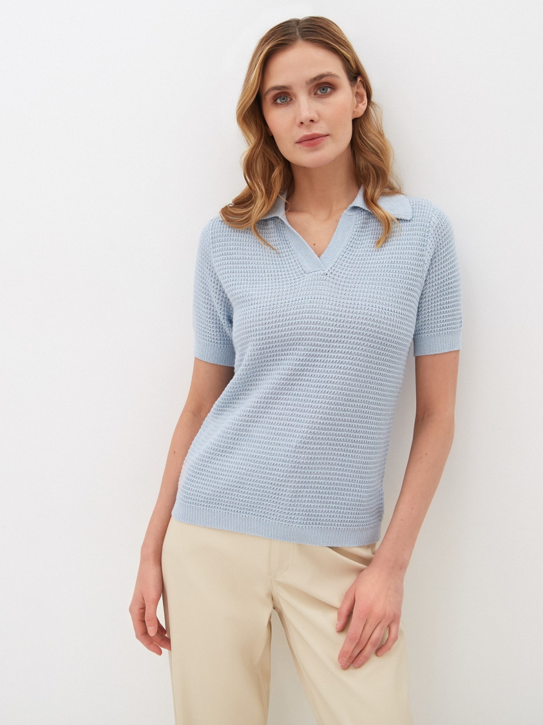 Трикотажная футболка-поло – оригинальная и стильная вещь. Модель средней длины прямого силуэта будет уместна в каждом гардеробе. Футболка изготовлена из мягкого трикотажа в свежих весенних цветах. 70% вискоза, 30%нейлон