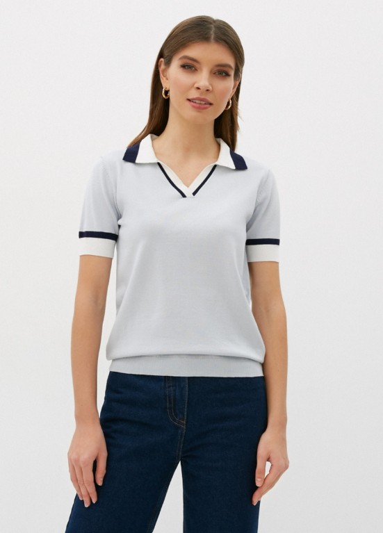 Трикотажная футболка-поло – оригинальная и стильная вещь. Модель средней длины прямого силуэта будет уместна в каждом гардеробе. Футболка изготовлена из мягкого ажурного трикотажа в свежих весенних цветах. 70% вискоза, 30%нейлон