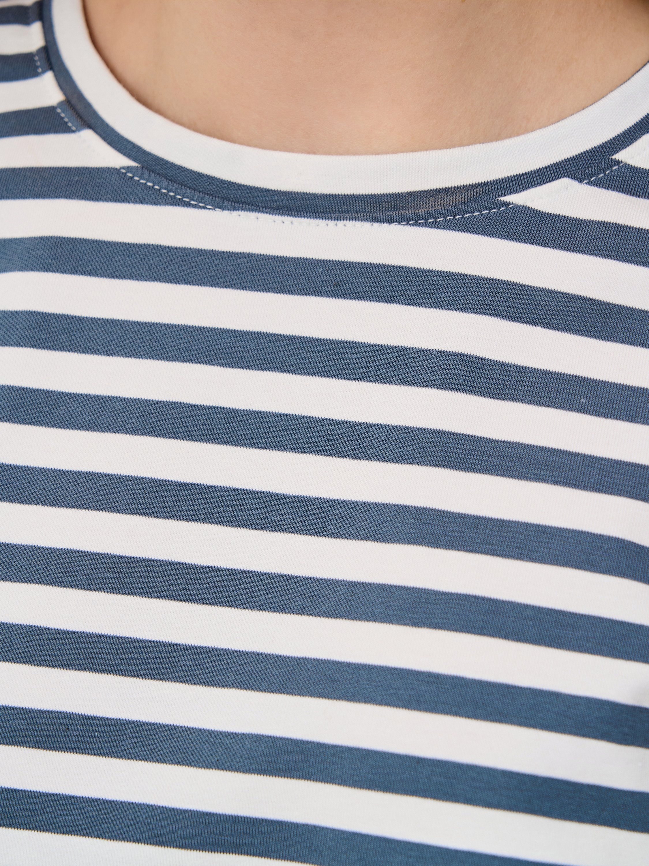 Женская футболка из кулирки с лайкрой, с втачным коротким рукавом. Горловина обработана бейкой из основной ткани. Низ изделия и низ рукава подвернуты и подшиты.