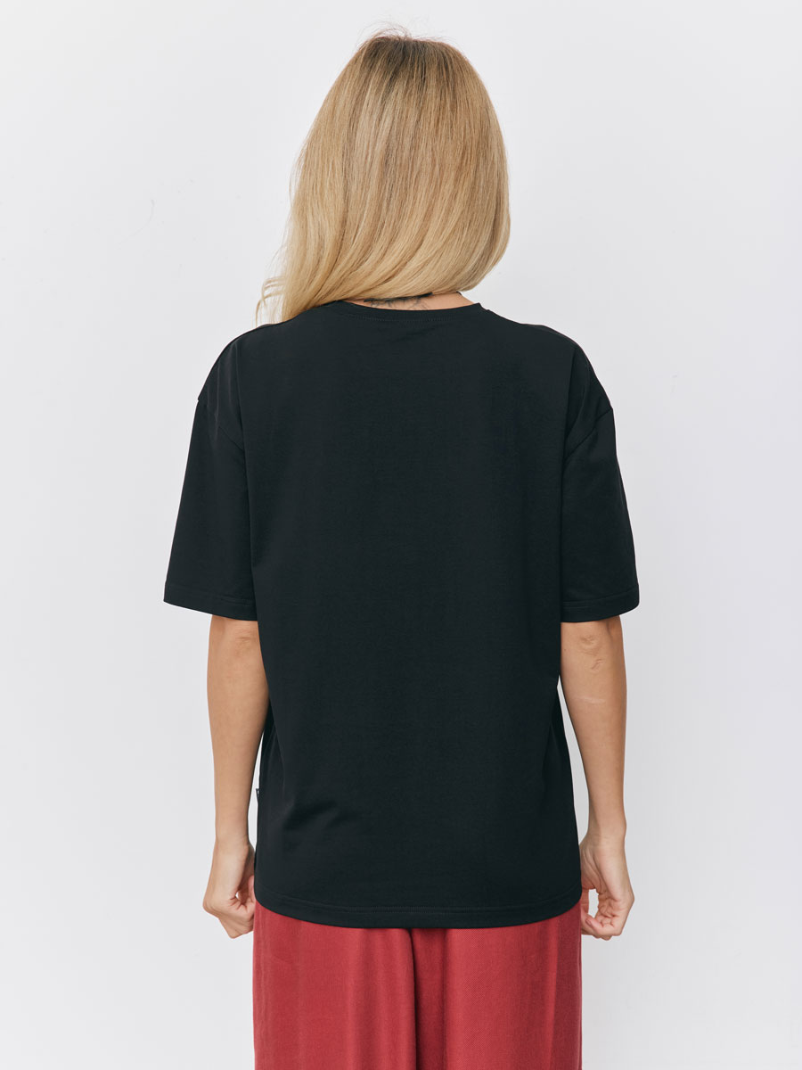 Женская футболка из кулирки с лайкрой, с втачным коротким рукавом. Горловина обработана бейкой из основной ткани. Низ изделия и низ рукава подвернуты и подшиты.